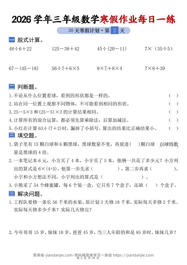 26学年三年级数学上寒假作业每日一练30天复习预习(含答案60页) 简单街 16小时前发布 关注 私信 010 26学年三年级数学上寒假作业每日一练30天复习预习(含答案60页)此内容为付费资源,请付费后查看¥1.2黄金会员免费钻石会员免费立即购买您当前未登录!建议登陆后购买,可保存购买订单格式pdf页数60 页大小16.01 MB付费资源 ——预览已结束,还剩58页未读——开通会员后可免费下载高清完整文档 © 版权声明文章版权归作者所有,未经允许请勿转载。THE END小学数学喜欢就支持一下吧点赞0 分享收藏0