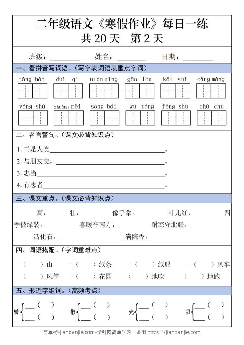 二年级上语文寒假作业每日一练 简单街 1月前发布 关注 私信 010 二年级上语文寒假作业每日一练此内容为付费资源,请付费后查看¥0.9黄金会员免费钻石会员免费立即购买您当前未登录!建议登陆后购买,可保存购买订单格式pdf页数20 页大小6.56 MB付费资源 ——预览已结束,还剩18页未读——开通会员后可免费下载高清完整文档 © 版权声明文章版权归作者所有,未经允许请勿转载。THE END小学语文喜欢就支持一下吧点赞0 分享收藏0