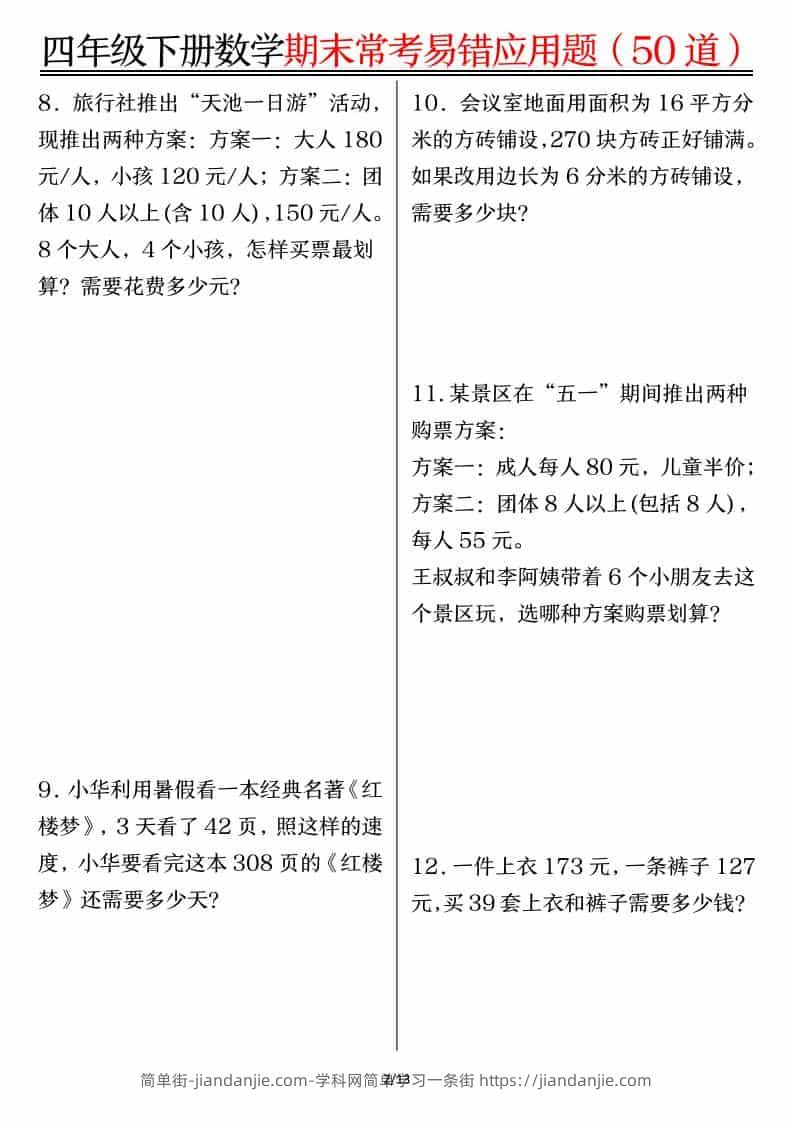 四年级下数学1-8单元常考易错应用题 简单街 42天前发布 关注 私信 010 四年级下数学1-8单元常考易错应用题此内容为付费资源,请付费后查看¥0.9黄金会员免费钻石会员免费立即购买您当前未登录!建议登陆后购买,可保存购买订单格式pdf页数26 页大小2.06 MB付费资源 ——预览已结束,还剩24页未读——开通会员后可免费下载高清完整文档 © 版权声明文章版权归作者所有,未经允许请勿转载。THE END小学数学喜欢就支持一下吧点赞0 分享收藏0
