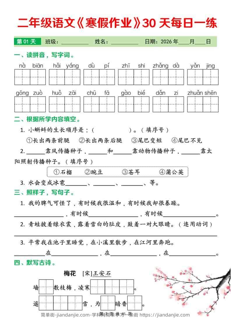 二年级下语文寒假作业每日一练30天 简单街 1月前发布 关注 私信 010 二年级下语文寒假作业每日一练30天此内容为付费资源,请付费后查看¥2.7黄金会员免费钻石会员免费立即购买您当前未登录!建议登陆后购买,可保存购买订单格式pdf页数41 页大小3.83 MB付费资源 ——预览已结束,还剩39页未读——开通会员后可免费下载高清完整文档 © 版权声明文章版权归作者所有,未经允许请勿转载。THE END小学语文喜欢就支持一下吧点赞0 分享收藏0