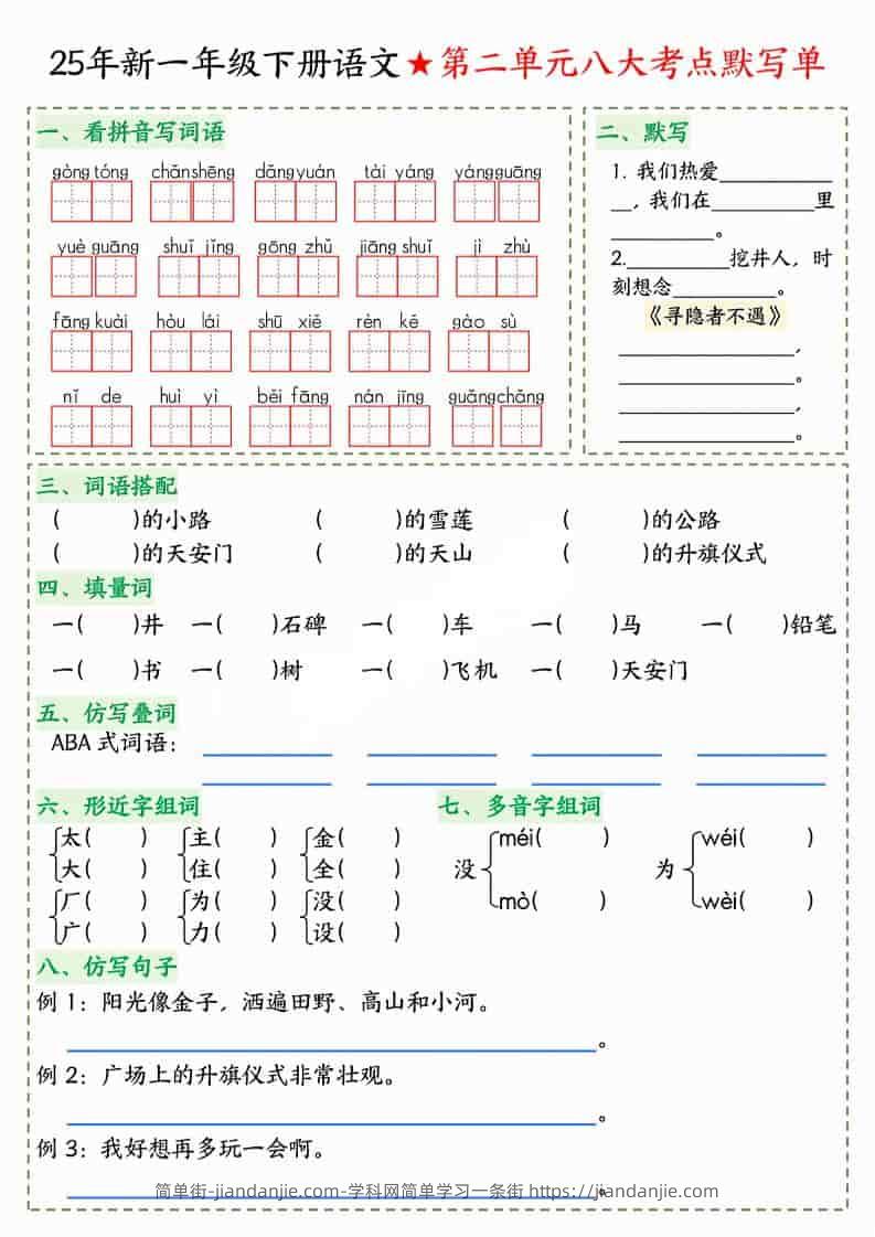 一年级下语文八大考点默写单 简单街 1月前发布 关注 私信 010 一年级下语文八大考点默写单此内容为付费资源,请付费后查看¥0.9黄金会员免费钻石会员免费立即购买您当前未登录!建议登陆后购买,可保存购买订单格式pdf页数8 页大小3.82 MB付费资源 ——预览已结束,还剩6页未读——开通会员后可免费下载高清完整文档 © 版权声明文章版权归作者所有,未经允许请勿转载。THE END小学语文喜欢就支持一下吧点赞0 分享收藏0