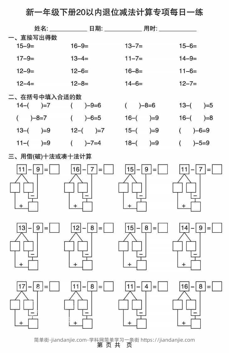一年级下数学20以内退位减法计算专项每日一练 简单街 38天前发布 关注 私信 000 一年级下数学20以内退位减法计算专项每日一练此内容为付费资源,请付费后查看¥0.9黄金会员免费钻石会员免费立即购买您当前未登录!建议登陆后购买,可保存购买订单格式pdf页数29 页大小3.29 MB付费资源 ——预览已结束,还剩27页未读——开通会员后可免费下载高清完整文档 © 版权声明文章版权归作者所有,未经允许请勿转载。THE END小学数学喜欢就支持一下吧点赞0 分享收藏0