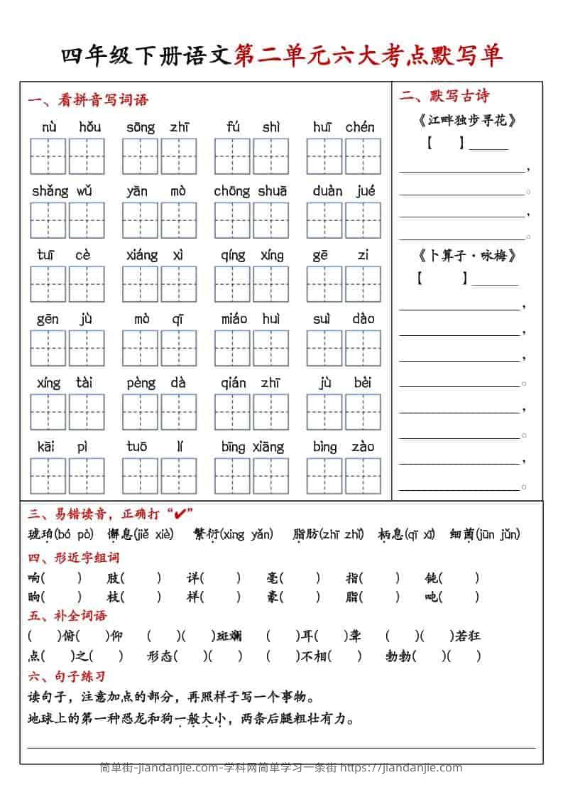 四年级下语文1-8单元考点默写单 简单街 51天前发布 关注 私信 020 四年级下语文1-8单元考点默写单此内容为付费资源,请付费后查看¥2.7黄金会员免费钻石会员免费立即购买您当前未登录!建议登陆后购买,可保存购买订单格式pdf页数16 页大小2.97 MB付费资源 ——预览已结束,还剩14页未读——开通会员后可免费下载高清完整文档 © 版权声明文章版权归作者所有,未经允许请勿转载。THE END小学语文喜欢就支持一下吧点赞0 分享收藏0