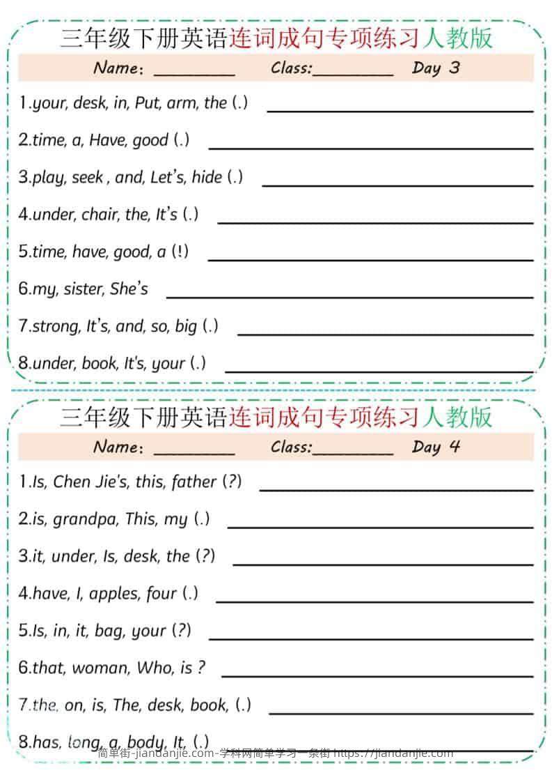 三年级下英语连词成句专项练习《人教版》 简单街 38天前发布 关注 私信 010 三年级下英语连词成句专项练习《人教版》此内容为付费资源,请付费后查看¥1.2黄金会员免费钻石会员免费立即购买您当前未登录!建议登陆后购买,可保存购买订单格式pdf页数10 页大小9.14 MB付费资源 ——预览已结束,还剩8页未读——开通会员后可免费下载高清完整文档 © 版权声明文章版权归作者所有,未经允许请勿转载。THE END小学英语喜欢就支持一下吧点赞0 分享收藏0