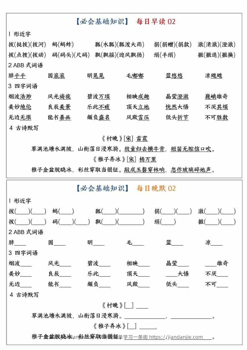 五年级下语文全册重点知识点每日默写小纸条1 简单街 49天前发布 关注 私信 000 五年级下语文全册重点知识点每日默写小纸条1此内容为付费资源,请付费后查看¥2.7黄金会员免费钻石会员免费立即购买您当前未登录!建议登陆后购买,可保存购买订单格式pdf页数15 页大小1.48 MB付费资源 ——预览已结束,还剩13页未读——开通会员后可免费下载高清完整文档 © 版权声明文章版权归作者所有,未经允许请勿转载。THE END小学语文喜欢就支持一下吧点赞0 分享收藏0