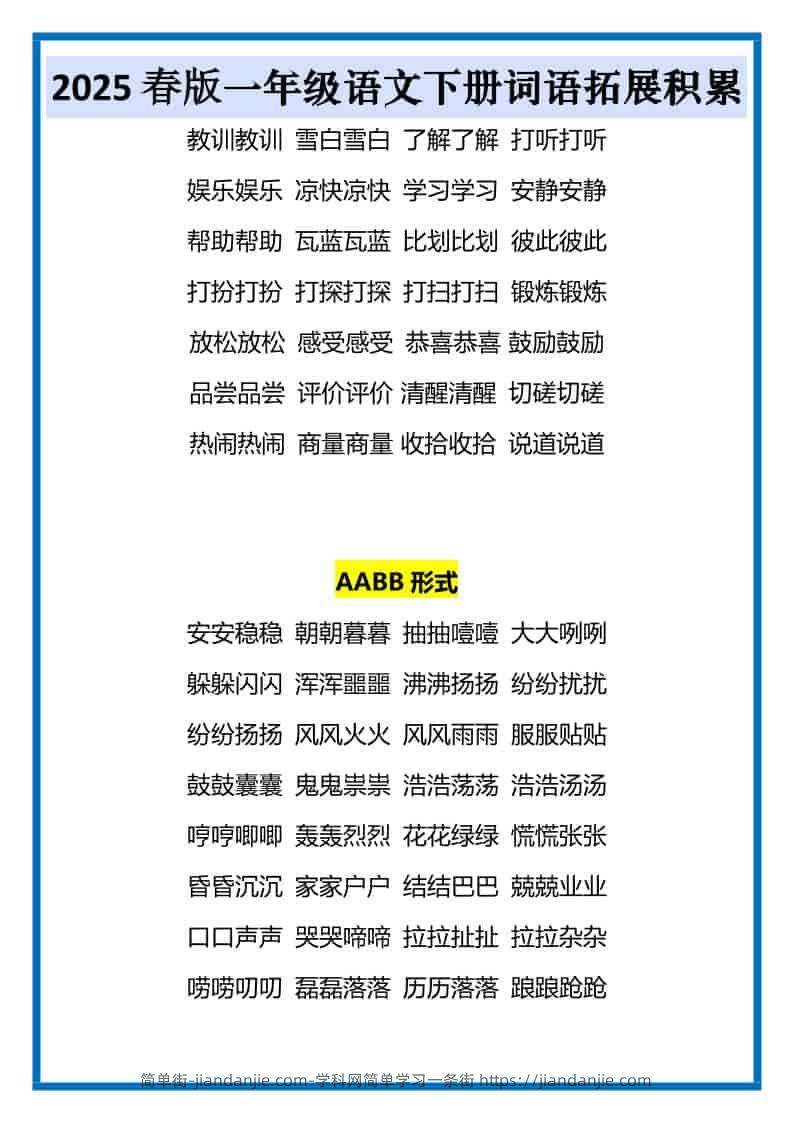 一年级下语文词语拓展积累 简单街 1月前发布 关注 私信 010 一年级下语文词语拓展积累此内容为付费资源,请付费后查看¥1.2黄金会员免费钻石会员免费立即购买您当前未登录!建议登陆后购买,可保存购买订单格式pdf页数4 页大小256.10 KB付费资源 ——预览已结束,还剩2页未读——开通会员后可免费下载高清完整文档 © 版权声明文章版权归作者所有,未经允许请勿转载。THE END小学语文喜欢就支持一下吧点赞0 分享收藏0