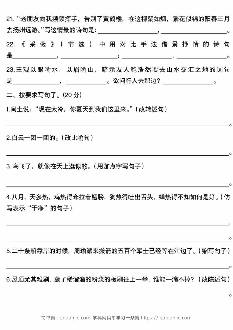 五年级下语文句子专项(含答案) 简单街 48天前发布 关注 私信 010 五年级下语文句子专项(含答案)此内容为付费资源,请付费后查看¥1.2黄金会员免费钻石会员免费立即购买您当前未登录!建议登陆后购买,可保存购买订单格式pdf页数8 页大小365.18 KB付费资源 ——预览已结束,还剩6页未读——开通会员后可免费下载高清完整文档 © 版权声明文章版权归作者所有,未经允许请勿转载。THE END小学语文喜欢就支持一下吧点赞0 分享收藏0