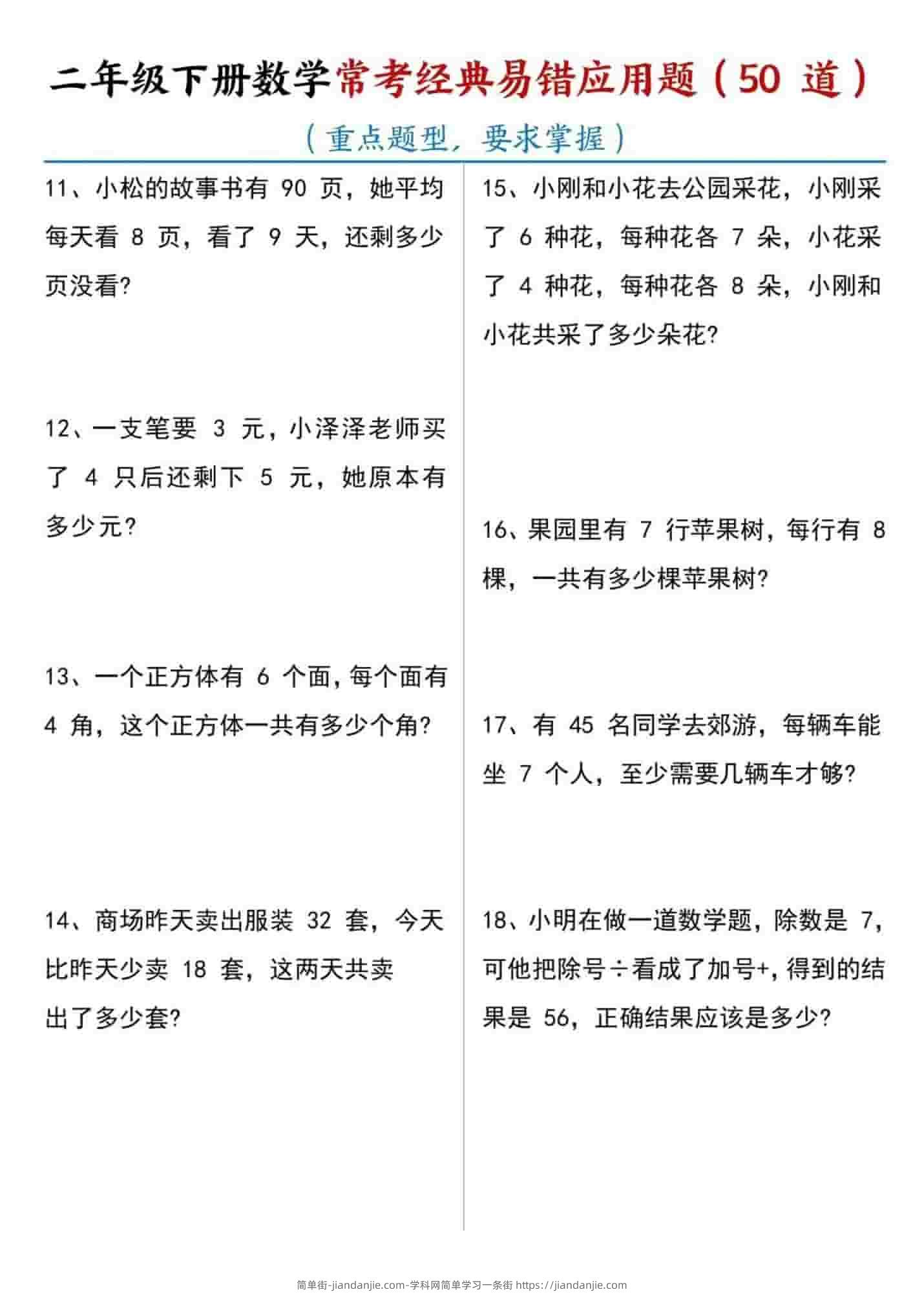 二年级下数学常考易错应用题(50道) 简单街 21天前发布 关注 私信 010 二年级下数学常考易错应用题(50道)此内容为付费资源,请付费后查看¥1.5黄金会员免费钻石会员免费立即购买您当前未登录!建议登陆后购买,可保存购买订单格式pdf页数6 页大小1.20 MB付费资源 ——预览已结束,还剩4页未读——开通会员后可免费下载高清完整文档 © 版权声明文章版权归作者所有,未经允许请勿转载。THE END小学数学喜欢就支持一下吧点赞0 分享收藏0