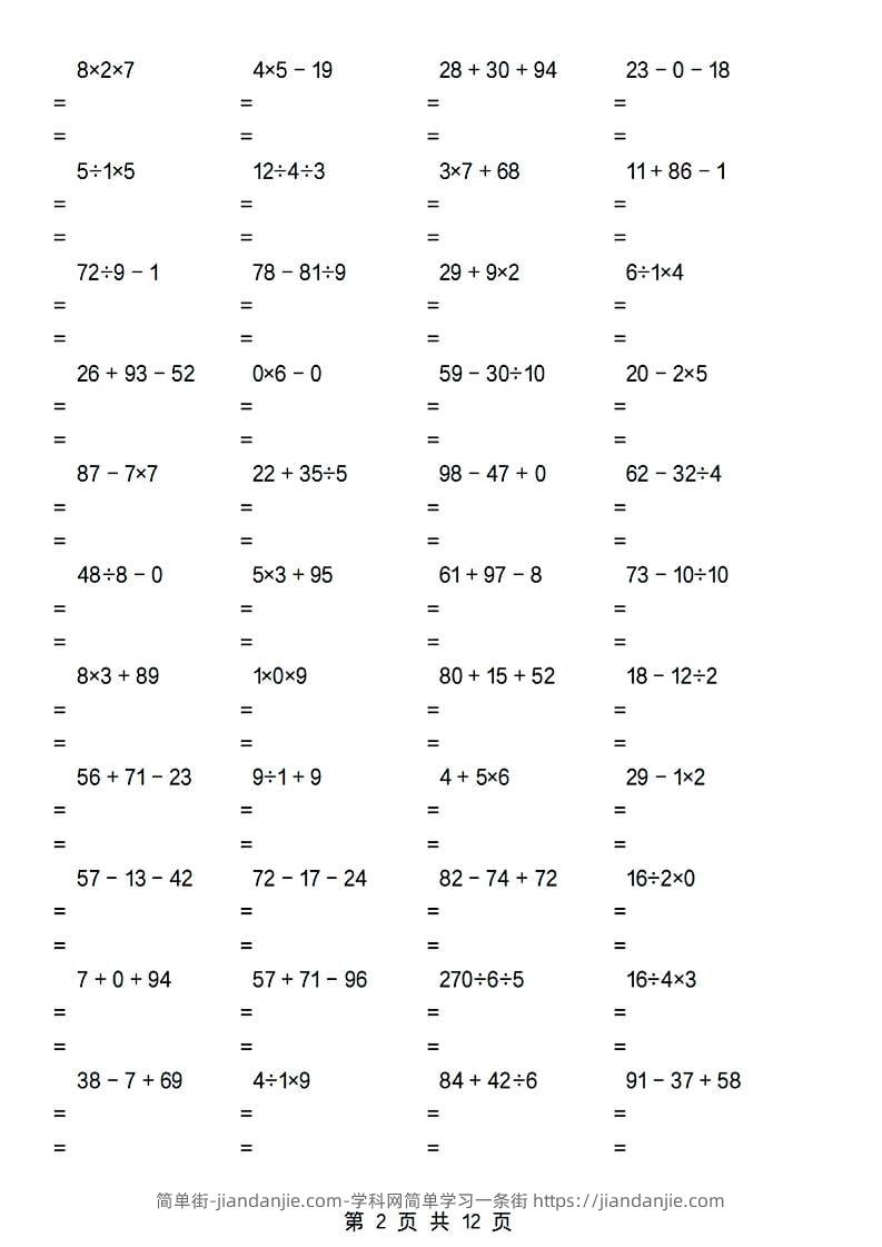 二年级下数学加减乘除混合运算专项 简单街 19天前发布 关注 私信 010 二年级下数学加减乘除混合运算专项此内容为付费资源,请付费后查看¥0.9黄金会员免费钻石会员免费立即购买您当前未登录!建议登陆后购买,可保存购买订单格式pdf页数12 页大小2.28 MB付费资源 ——预览已结束,还剩10页未读——开通会员后可免费下载高清完整文档 © 版权声明文章版权归作者所有,未经允许请勿转载。THE END小学数学喜欢就支持一下吧点赞0 分享收藏0