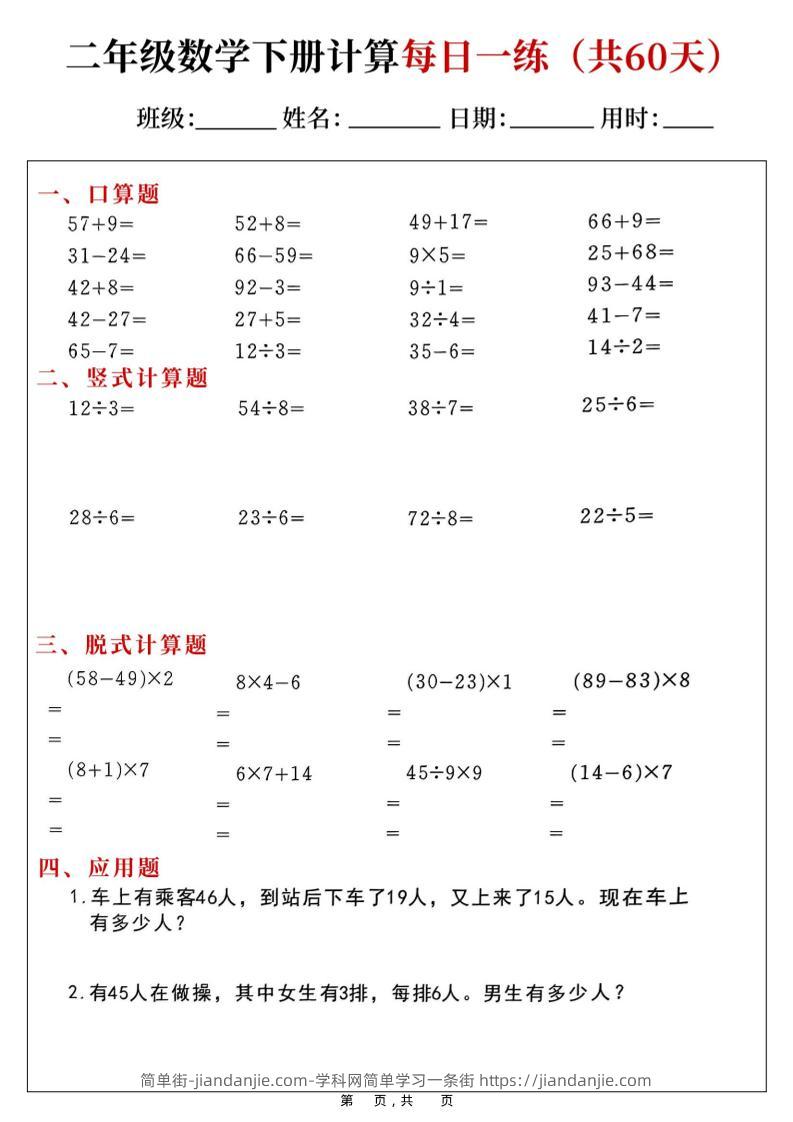 二年级下数学计算每日一练 简单街 4小时前发布 关注 私信 000 二年级下数学计算每日一练此内容为付费资源,请付费后查看¥1.2黄金会员免费钻石会员免费立即购买您当前未登录!建议登陆后购买,可保存购买订单格式pdf页数60 页大小10.28 MB付费资源 ——预览已结束,还剩58页未读——开通会员后可免费下载高清完整文档 © 版权声明文章版权归作者所有,未经允许请勿转载。THE END小学数学喜欢就支持一下吧点赞0 分享收藏0
