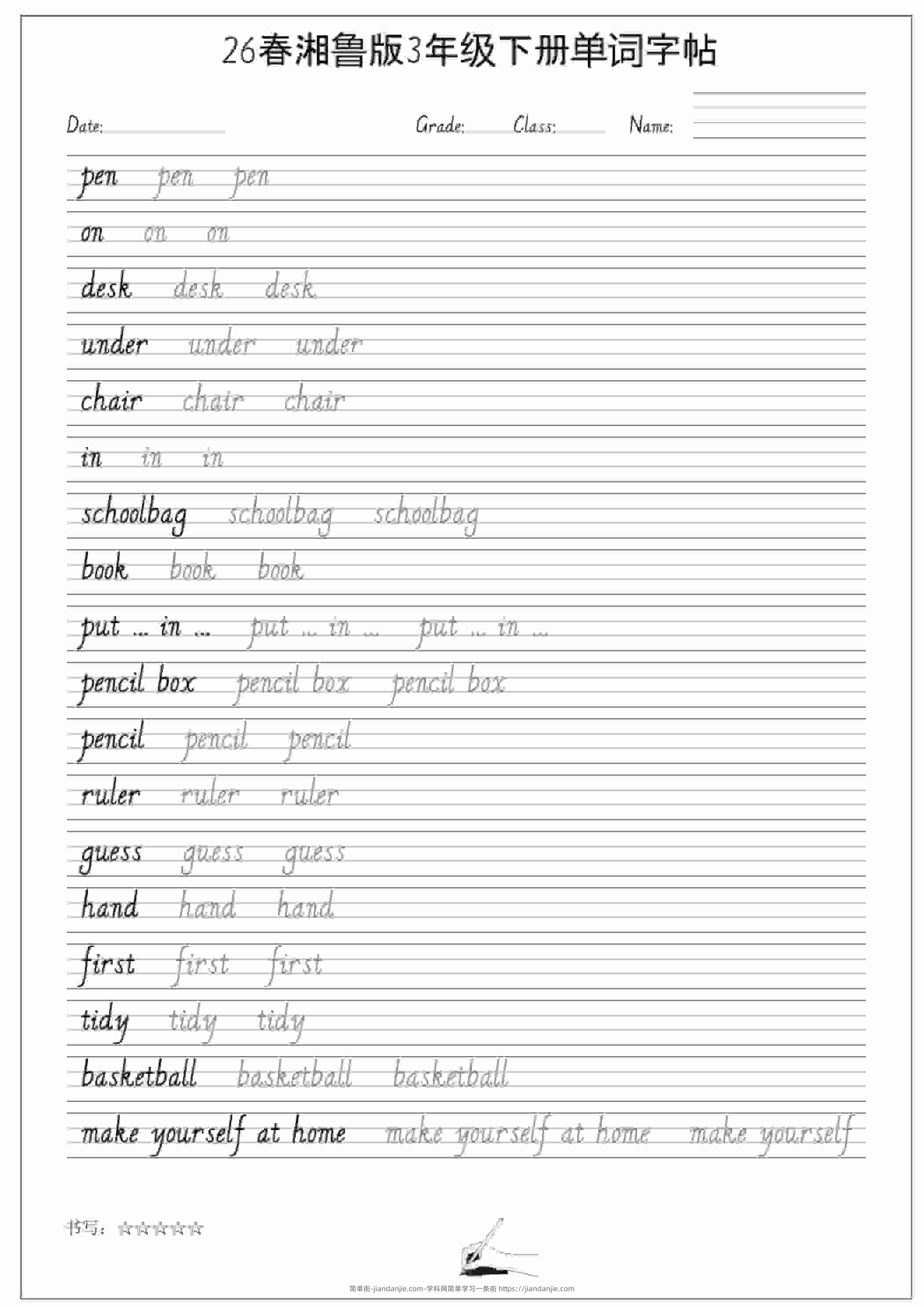 三年级下英语26春单词字帖《湘鲁版》 简单街 5小时前发布 关注 私信 000 三年级下英语26春单词字帖《湘鲁版》此内容为付费资源,请付费后查看¥1.2黄金会员免费钻石会员免费立即购买您当前未登录!建议登陆后购买,可保存购买订单格式pdf页数8 页大小215.22 KB付费资源 ——预览已结束,还剩6页未读——开通会员后可免费下载高清完整文档 © 版权声明文章版权归作者所有,未经允许请勿转载。THE END小学英语喜欢就支持一下吧点赞0 分享收藏0