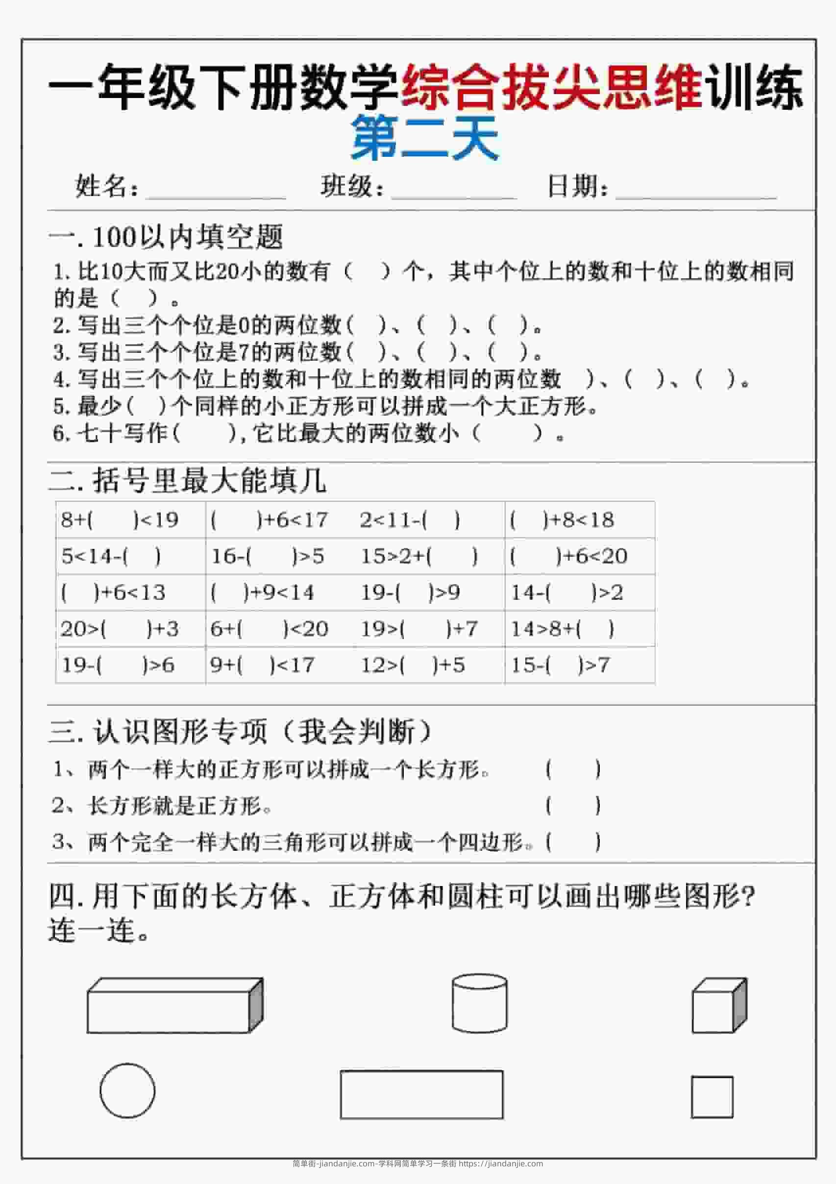 一年级下数学综合拔尖思维练习 简单街 昨天发布 关注 私信 000 一年级下数学综合拔尖思维练习此内容为付费资源,请付费后查看¥2.7黄金会员免费钻石会员免费立即购买您当前未登录!建议登陆后购买,可保存购买订单格式pdf页数6 页大小1.28 MB付费资源 ——预览已结束,还剩4页未读——开通会员后可免费下载高清完整文档 © 版权声明文章版权归作者所有,未经允许请勿转载。THE END小学数学喜欢就支持一下吧点赞0 分享收藏0
