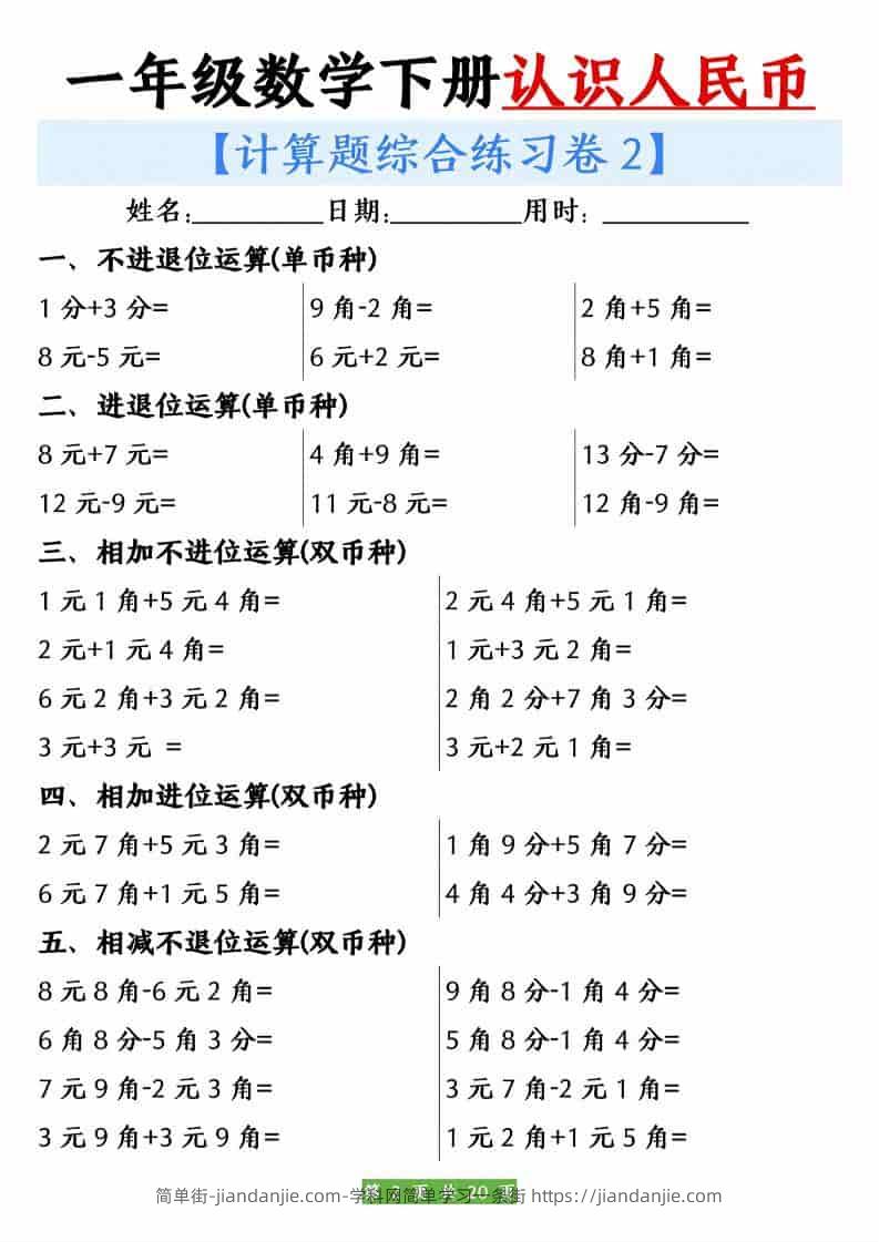 一年级下数学人民币之间的兑换练习 简单街 2小时前发布 关注 私信 000 一年级下数学人民币之间的兑换练习此内容为付费资源,请付费后查看¥2.7黄金会员免费钻石会员免费立即购买您当前未登录!建议登陆后购买,可保存购买订单格式pdf页数20 页大小8.54 MB付费资源 ——预览已结束,还剩18页未读——开通会员后可免费下载高清完整文档 © 版权声明文章版权归作者所有,未经允许请勿转载。THE END小学数学喜欢就支持一下吧点赞0 分享收藏0