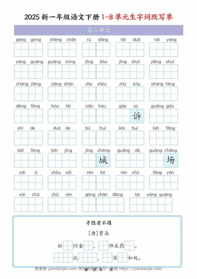 一年级下语文1-8单元生字词默写单(衔接版) 简单街 16小时前发布 关注 私信 000 一年级下语文1-8单元生字词默写单(衔接版)此内容为付费资源,请付费后查看¥1.2黄金会员免费钻石会员免费立即购买您当前未登录!建议登陆后购买,可保存购买订单格式pdf页数16 页大小9.91 MB付费资源 ——预览已结束,还剩14页未读——开通会员后可免费下载高清完整文档 © 版权声明文章版权归作者所有,未经允许请勿转载。THE END小学语文喜欢就支持一下吧点赞0 分享收藏0