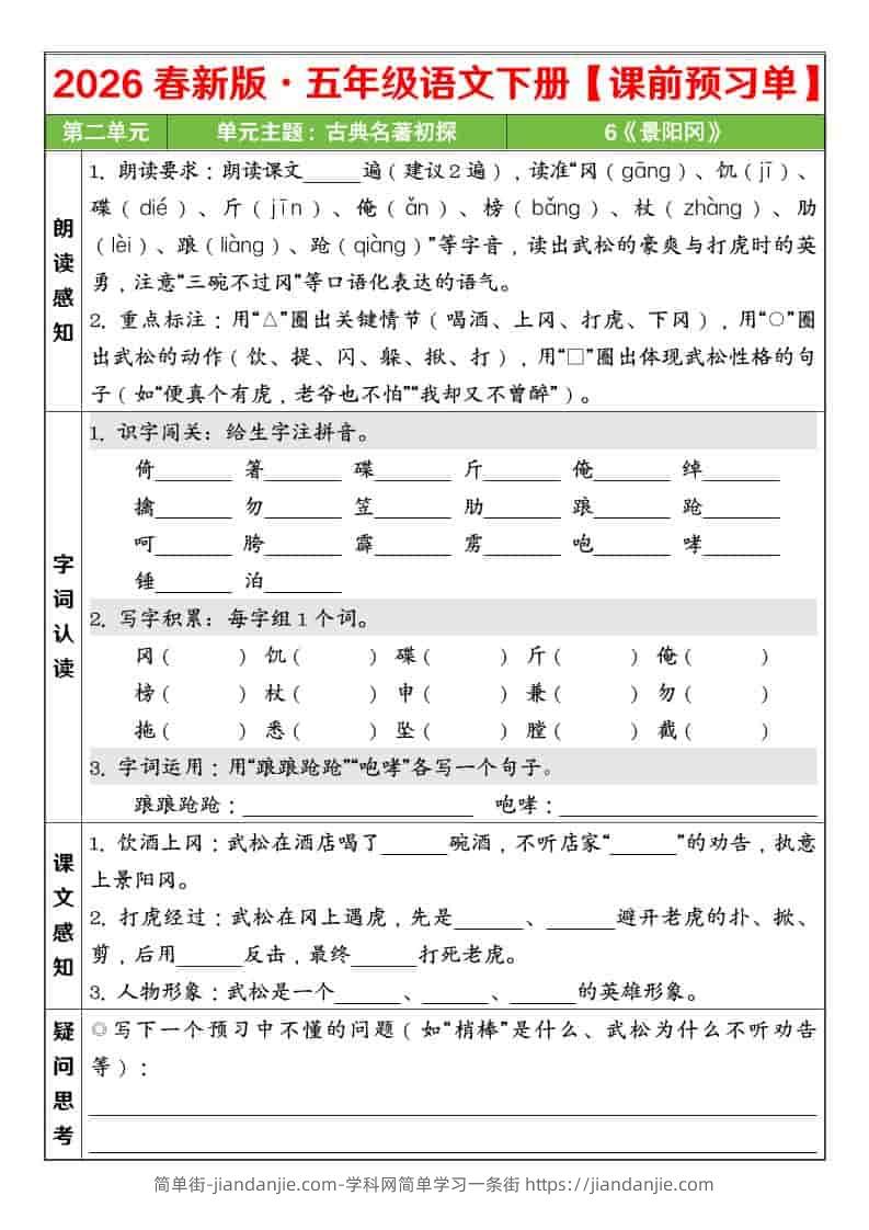 五年级下语文26春第二单元课前预习单 简单街 13小时前发布 关注 私信 010 五年级下语文26春第二单元课前预习单此内容为付费资源,请付费后查看¥0.9黄金会员免费钻石会员免费立即购买您当前未登录!建议登陆后购买,可保存购买订单格式pdf页数5 页大小568.48 KB付费资源 ——预览已结束,还剩3页未读——开通会员后可免费下载高清完整文档 © 版权声明文章版权归作者所有,未经允许请勿转载。THE END小学语文喜欢就支持一下吧点赞0 分享收藏0