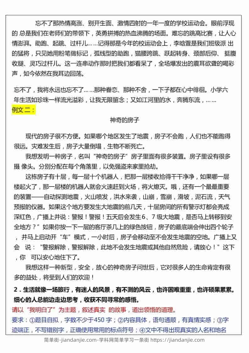 六年级下语文期末作文真题汇总50题 简单街 5天前发布 关注 私信 030 六年级下语文期末作文真题汇总50题此内容为付费资源,请付费后查看¥2.7黄金会员免费钻石会员免费立即购买您当前未登录!建议登陆后购买,可保存购买订单格式pdf页数52 页大小1.42 MB付费资源 ——预览已结束,还剩50页未读——开通会员后可免费下载高清完整文档 © 版权声明文章版权归作者所有,未经允许请勿转载。THE END小学语文喜欢就支持一下吧点赞0 分享收藏0