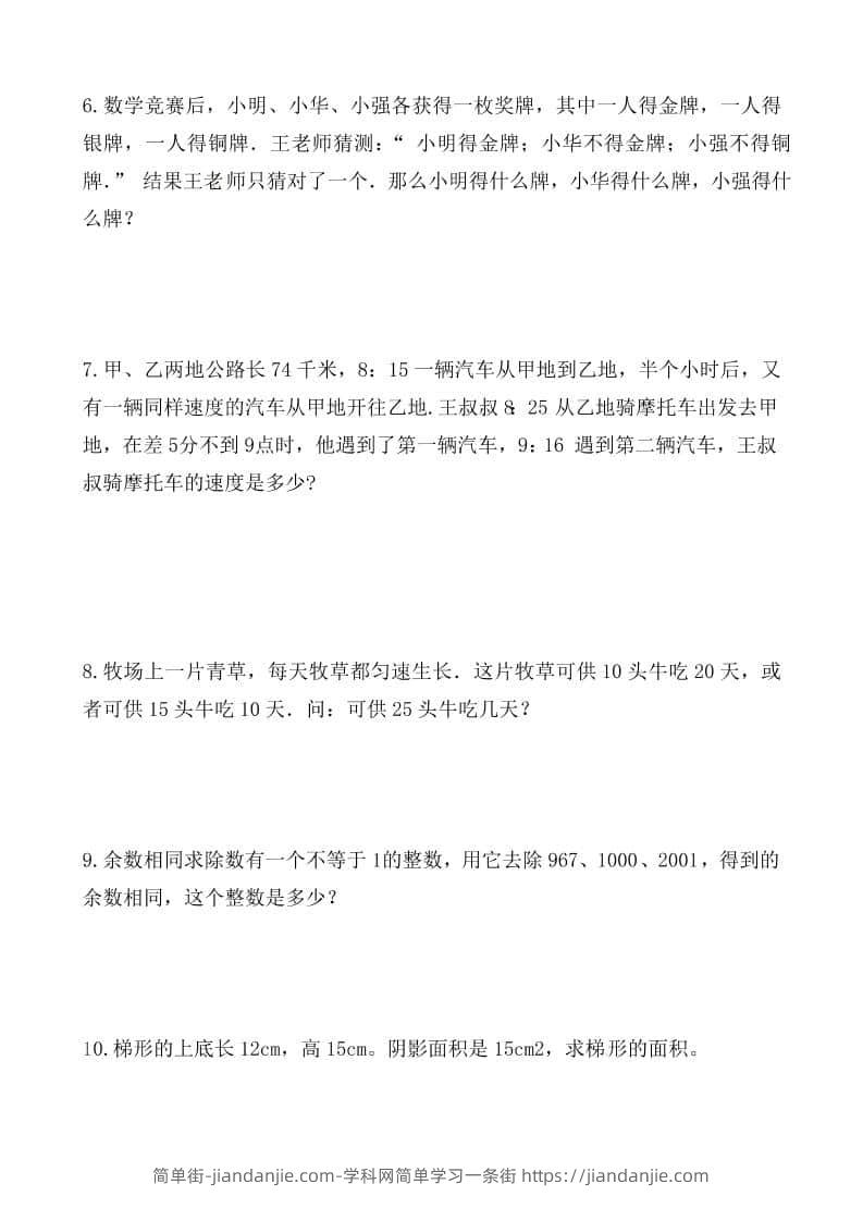 五年级下数学思维拓展训练(第3套) 简单街 6小时前发布 关注 私信 010 五年级下数学思维拓展训练(第3套)此内容为付费资源,请付费后查看¥1.5黄金会员免费钻石会员免费立即购买您当前未登录!建议登陆后购买,可保存购买订单格式pdf页数6 页大小519.92 KB付费资源 ——预览已结束,还剩4页未读——开通会员后可免费下载高清完整文档 © 版权声明文章版权归作者所有,未经允许请勿转载。THE END小学数学喜欢就支持一下吧点赞0 分享收藏0