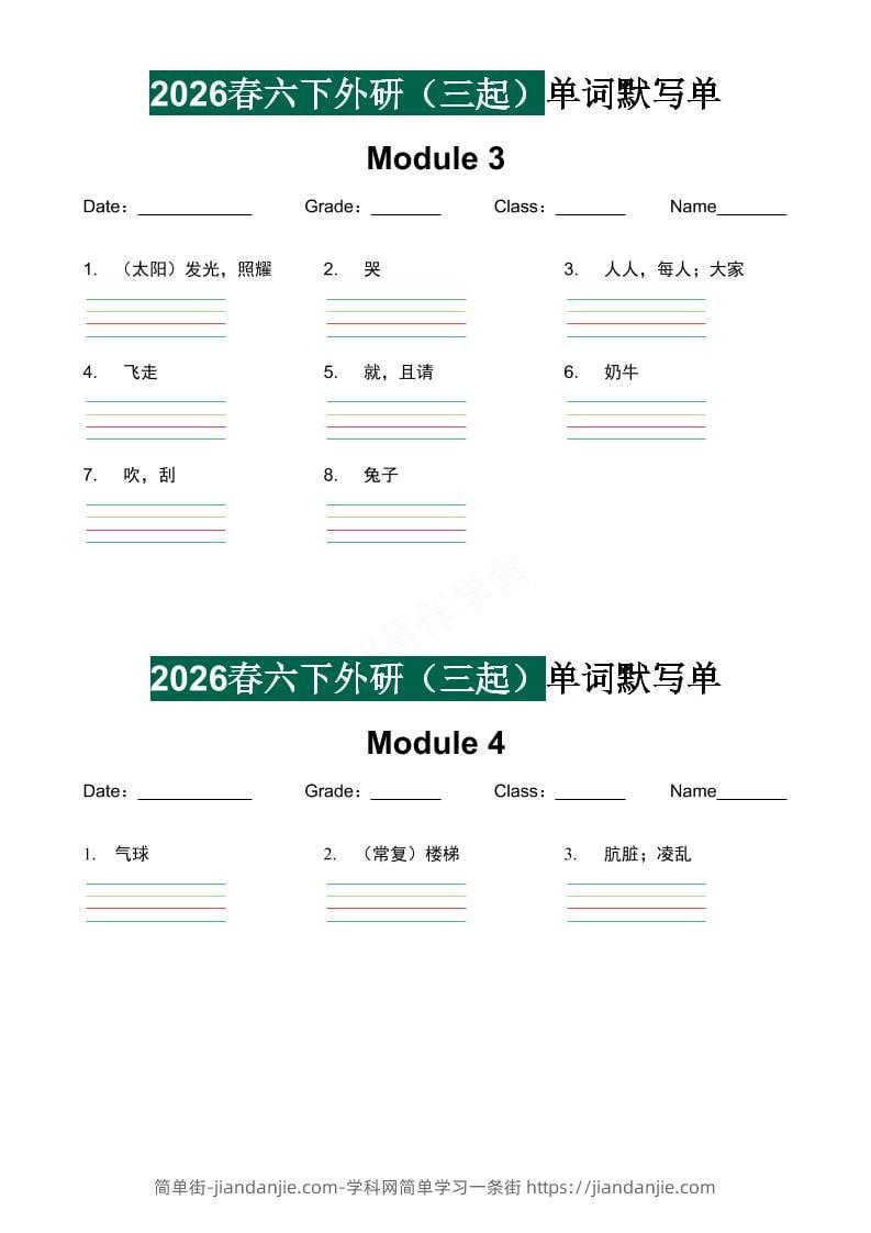 六年级下英语单词默写单《外研版(三起)》 简单街 昨天发布 关注 私信 010 六年级下英语单词默写单《外研版(三起)》此内容为付费资源,请付费后查看¥2.7黄金会员免费钻石会员免费立即购买您当前未登录!建议登陆后购买,可保存购买订单格式pdf页数7 页大小194.19 KB付费资源 ——预览已结束,还剩5页未读——开通会员后可免费下载高清完整文档 © 版权声明文章版权归作者所有,未经允许请勿转载。THE END小学英语喜欢就支持一下吧点赞0 分享收藏0