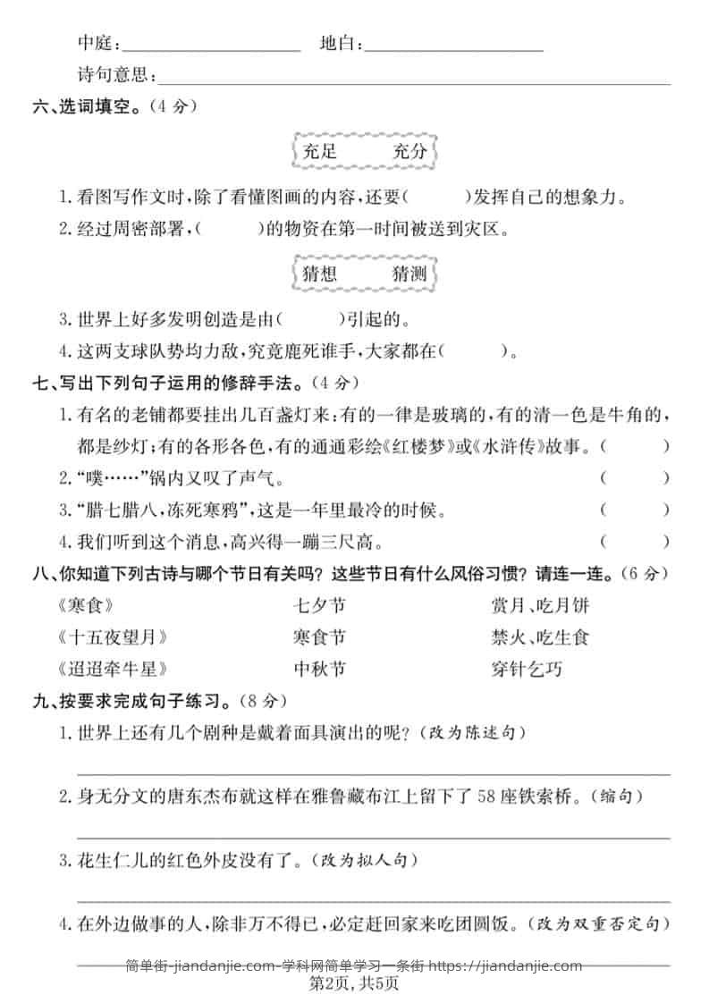 六年级下语文第一单元达标测试卷 简单街 昨天发布 关注 私信 020 六年级下语文第一单元达标测试卷此内容为付费资源,请付费后查看¥0.9黄金会员免费钻石会员免费立即购买您当前未登录!建议登陆后购买,可保存购买订单格式pdf页数5 页大小4.06 MB付费资源 ——预览已结束,还剩3页未读——开通会员后可免费下载高清完整文档 © 版权声明文章版权归作者所有,未经允许请勿转载。THE END小学语文喜欢就支持一下吧点赞0 分享收藏0