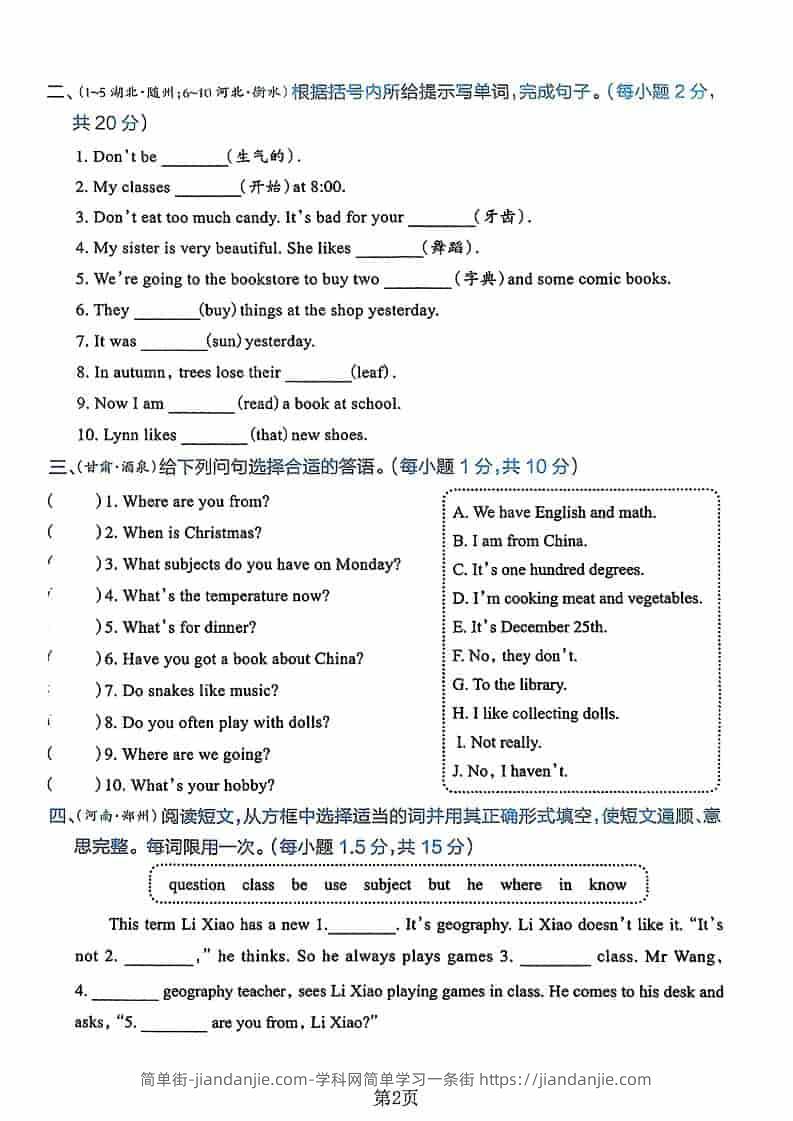 六年级下英语毕业分班真题卷3 简单街 10小时前发布 关注 私信 010 六年级下英语毕业分班真题卷3此内容为付费资源,请付费后查看¥0.9黄金会员免费钻石会员免费立即购买您当前未登录!建议登陆后购买,可保存购买订单格式pdf页数8 页大小3.20 MB付费资源 ——预览已结束,还剩6页未读——开通会员后可免费下载高清完整文档 © 版权声明文章版权归作者所有,未经允许请勿转载。THE END小学英语喜欢就支持一下吧点赞0 分享收藏0