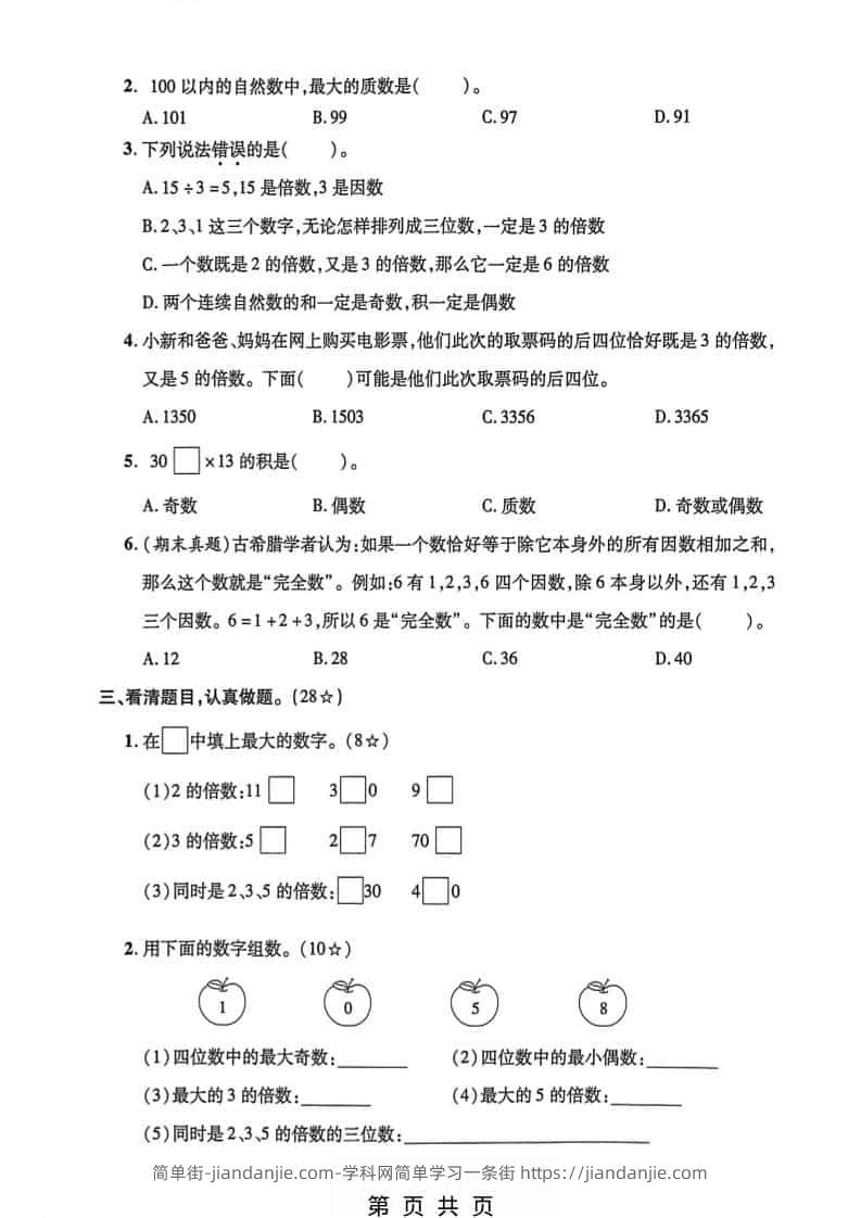 五年级下数学第二单元素养评估《人教版》 简单街 前天发布 关注 私信 010 五年级下数学第二单元素养评估《人教版》此内容为付费资源,请付费后查看¥1.2黄金会员免费钻石会员免费立即购买您当前未登录!建议登陆后购买,可保存购买订单格式pdf页数5 页大小2.74 MB付费资源 ——预览已结束,还剩3页未读——开通会员后可免费下载高清完整文档 © 版权声明文章版权归作者所有,未经允许请勿转载。THE END小学数学喜欢就支持一下吧点赞0 分享收藏0