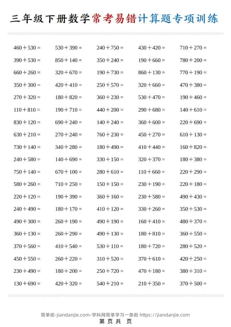 三年级下数学常考易错计算题专项训练 简单街 2小时前发布 关注 私信 000 三年级下数学常考易错计算题专项训练此内容为付费资源,请付费后查看¥1.2黄金会员免费钻石会员免费立即购买您当前未登录!建议登陆后购买,可保存购买订单格式pdf页数21 页大小3.10 MB付费资源 ——预览已结束,还剩19页未读——开通会员后可免费下载高清完整文档 © 版权声明文章版权归作者所有,未经允许请勿转载。THE END小学数学喜欢就支持一下吧点赞0 分享收藏0