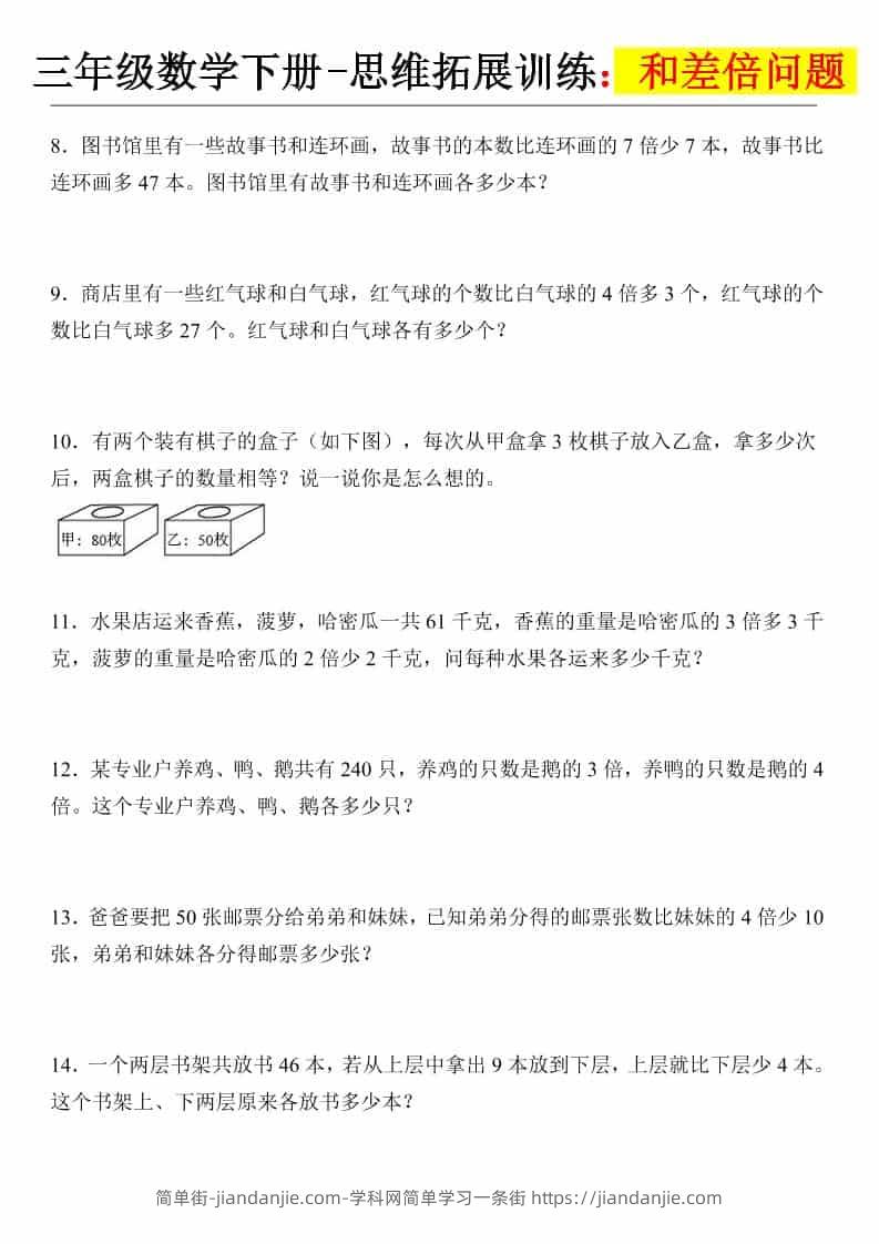 三年级下数学思维拓展训练-和差倍问题 简单街 3小时前发布 关注 私信 000 三年级下数学思维拓展训练-和差倍问题此内容为付费资源,请付费后查看¥0.9黄金会员免费钻石会员免费立即购买您当前未登录!建议登陆后购买,可保存购买订单格式pdf页数15 页大小495.55 KB付费资源 ——预览已结束,还剩13页未读——开通会员后可免费下载高清完整文档 © 版权声明文章版权归作者所有,未经允许请勿转载。THE END小学数学喜欢就支持一下吧点赞0 分享收藏0