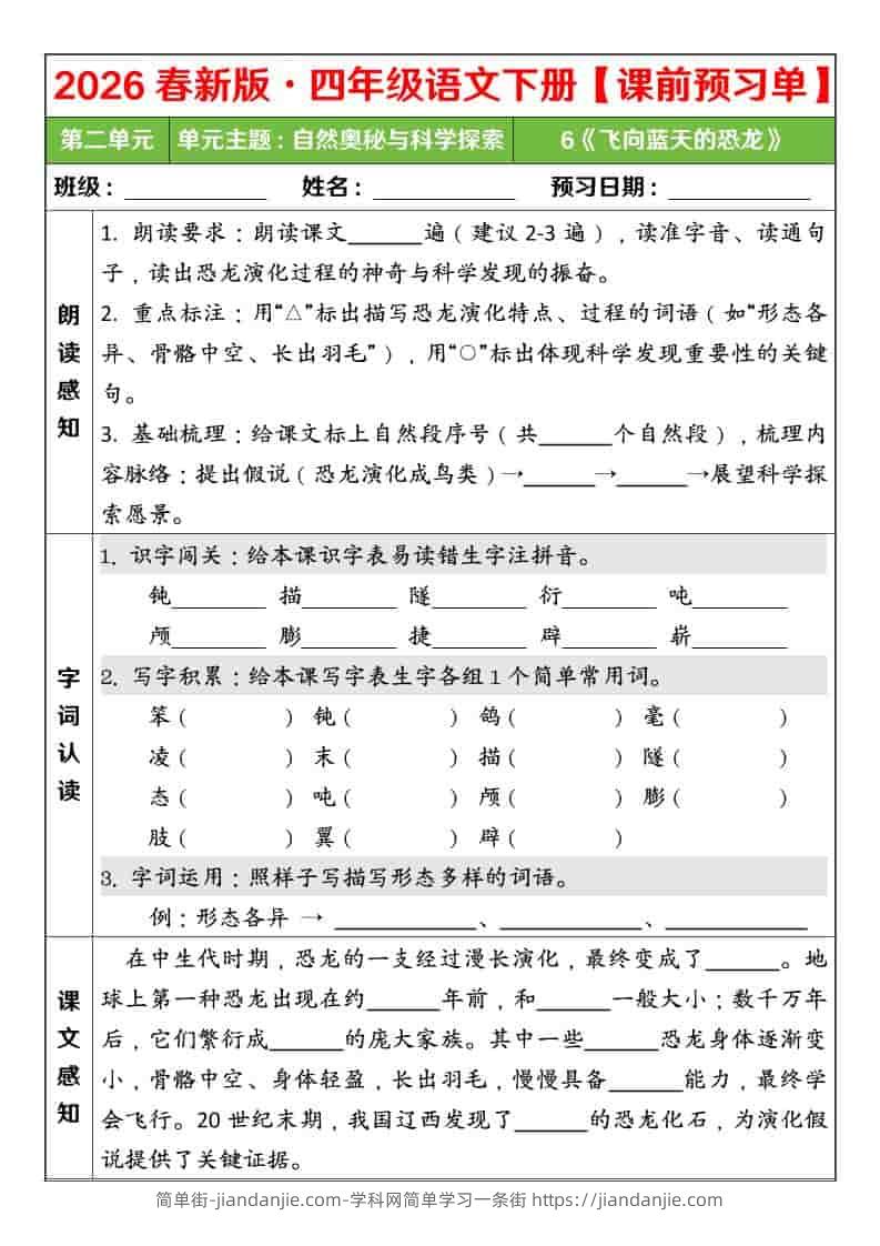 四年级下语文26春第二单元课前预习单 简单街 2小时前发布 关注 私信 000 四年级下语文26春第二单元课前预习单此内容为付费资源,请付费后查看¥1.2黄金会员免费钻石会员免费立即购买您当前未登录!建议登陆后购买,可保存购买订单格式pdf页数5 页大小584.62 KB付费资源 ——预览已结束,还剩3页未读——开通会员后可免费下载高清完整文档 © 版权声明文章版权归作者所有,未经允许请勿转载。THE END小学语文喜欢就支持一下吧点赞0 分享收藏0
