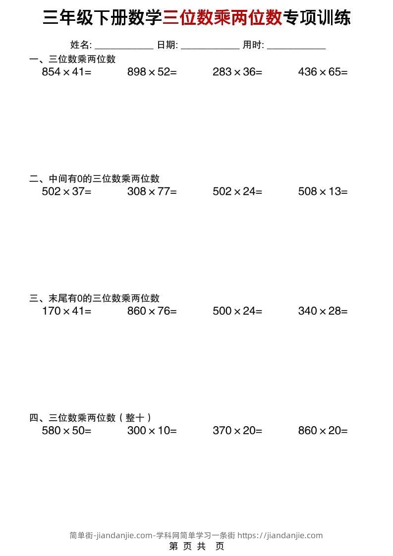 三年级下数学三位数乘两位数专项训练 简单街 2小时前发布 关注 私信 000 三年级下数学三位数乘两位数专项训练此内容为付费资源,请付费后查看¥2.7黄金会员免费钻石会员免费立即购买您当前未登录!建议登陆后购买,可保存购买订单格式pdf页数30 页大小249.69 KB付费资源 ——预览已结束,还剩28页未读——开通会员后可免费下载高清完整文档 © 版权声明文章版权归作者所有,未经允许请勿转载。THE END小学数学喜欢就支持一下吧点赞0 分享收藏0