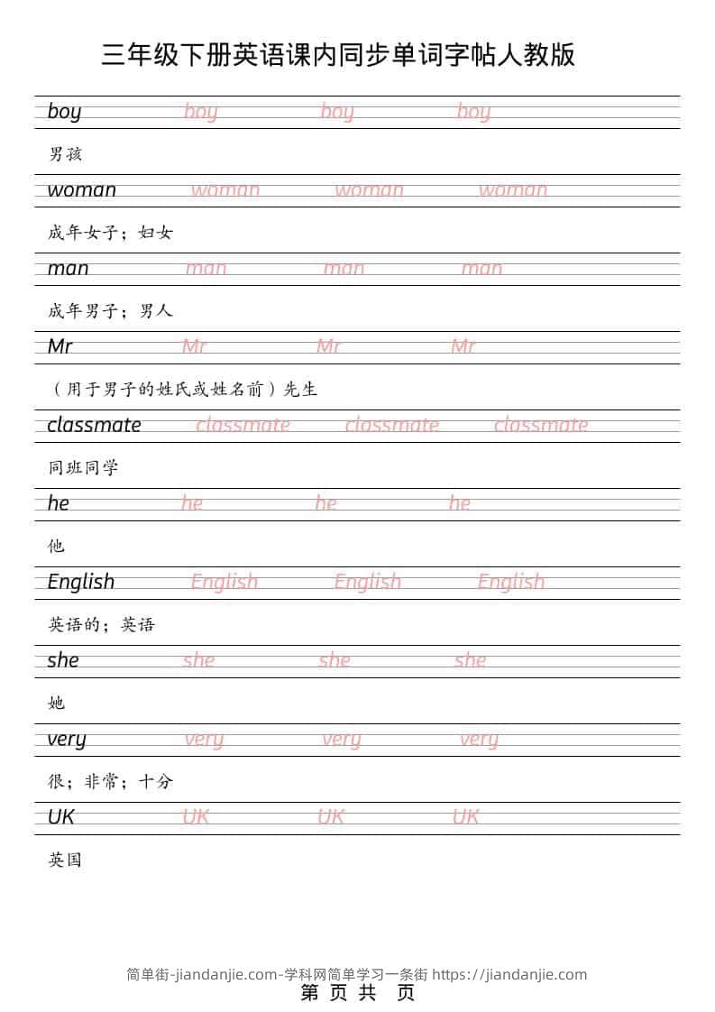 三年级下英语课内同步单词字帖《人教版PEP》 简单街 4小时前发布 关注 私信 000 三年级下英语课内同步单词字帖《人教版PEP》此内容为付费资源,请付费后查看¥1.2黄金会员免费钻石会员免费立即购买您当前未登录!建议登陆后购买,可保存购买订单格式pdf页数12 页大小2.41 MB付费资源 ——预览已结束,还剩10页未读——开通会员后可免费下载高清完整文档 © 版权声明文章版权归作者所有,未经允许请勿转载。THE END小学英语喜欢就支持一下吧点赞0 分享收藏0