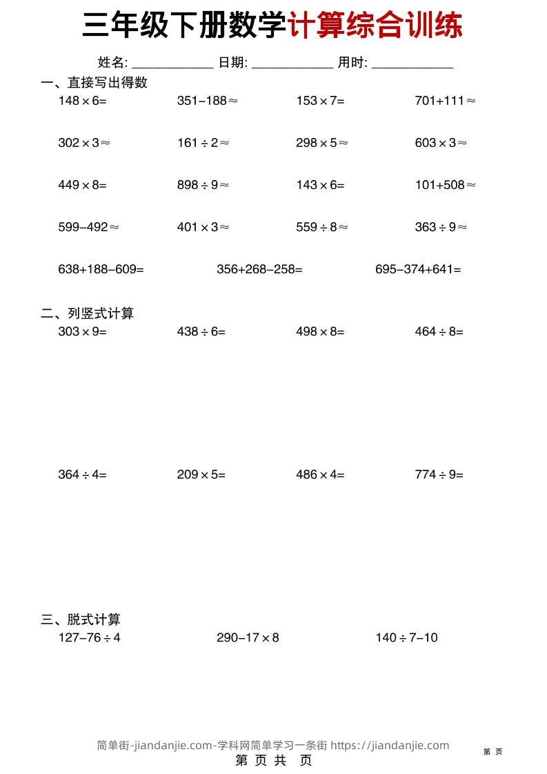 三年级下数学计算综合训练 简单街 前天发布 关注 私信 010 三年级下数学计算综合训练此内容为付费资源,请付费后查看¥1.5黄金会员免费钻石会员免费立即购买您当前未登录!建议登陆后购买,可保存购买订单格式pdf页数30 页大小134.21 KB付费资源 ——预览已结束,还剩28页未读——开通会员后可免费下载高清完整文档 © 版权声明文章版权归作者所有,未经允许请勿转载。THE END小学数学喜欢就支持一下吧点赞0 分享收藏0