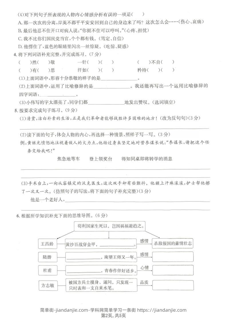 五年级下语文第四单元质量检测卷(1) 简单街 4天前发布 关注 私信 010 五年级下语文第四单元质量检测卷(1)此内容为付费资源,请付费后查看¥2.7黄金会员免费钻石会员免费立即购买您当前未登录!建议登陆后购买,可保存购买订单格式pdf页数5 页大小4.52 MB付费资源 ——预览已结束,还剩3页未读——开通会员后可免费下载高清完整文档 © 版权声明文章版权归作者所有,未经允许请勿转载。THE END小学语文喜欢就支持一下吧点赞0 分享收藏0