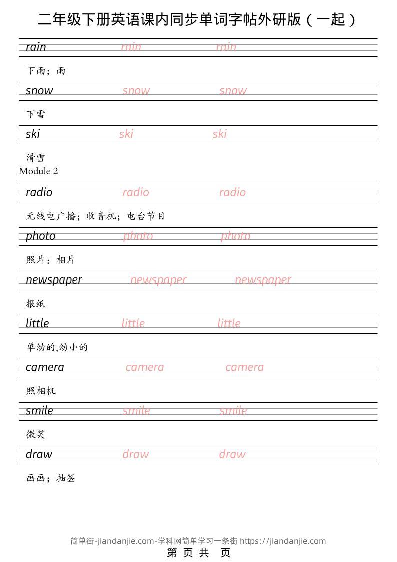 二年级下英语课内同步单词字帖《外研版(一起)》 简单街 3天前发布 关注 私信 010 二年级下英语课内同步单词字帖《外研版(一起)》此内容为付费资源,请付费后查看¥0.9黄金会员免费钻石会员免费立即购买您当前未登录!建议登陆后购买,可保存购买订单格式pdf页数12 页大小2.31 MB付费资源 ——预览已结束,还剩10页未读——开通会员后可免费下载高清完整文档 © 版权声明文章版权归作者所有,未经允许请勿转载。THE END小学英语喜欢就支持一下吧点赞0 分享收藏0