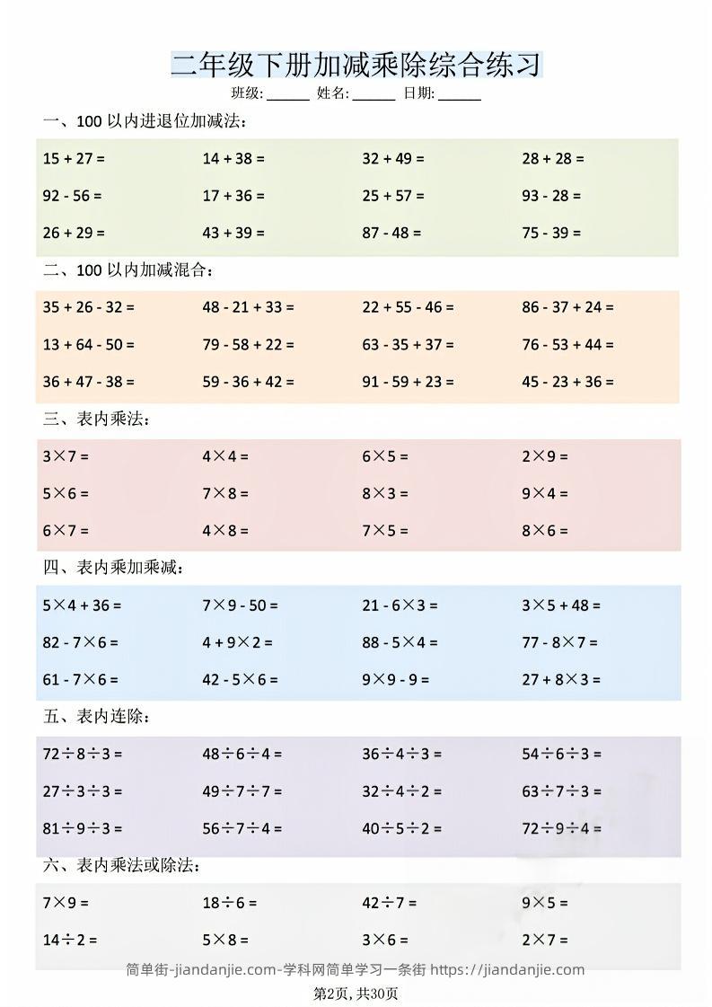 二年级下数学加减乘除综合练习(30页) 简单街 前天发布 关注 私信 010 二年级下数学加减乘除综合练习(30页)此内容为付费资源,请付费后查看¥1.2黄金会员免费钻石会员免费立即购买您当前未登录!建议登陆后购买,可保存购买订单格式pdf页数30 页大小9.75 MB付费资源 ——预览已结束,还剩28页未读——开通会员后可免费下载高清完整文档 © 版权声明文章版权归作者所有,未经允许请勿转载。THE END小学数学喜欢就支持一下吧点赞0 分享收藏0