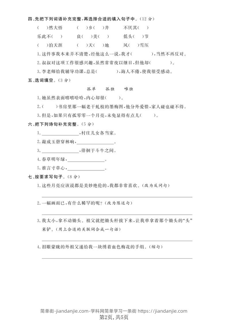 五年级下语文第一单元拔尖测试卷(5) 简单街 3小时前发布 关注 私信 000 五年级下语文第一单元拔尖测试卷(5)此内容为付费资源,请付费后查看¥1.2黄金会员免费钻石会员免费立即购买您当前未登录!建议登陆后购买,可保存购买订单格式pdf页数5 页大小2.02 MB付费资源 ——预览已结束,还剩3页未读——开通会员后可免费下载高清完整文档 © 版权声明文章版权归作者所有,未经允许请勿转载。THE END小学语文喜欢就支持一下吧点赞0 分享收藏0