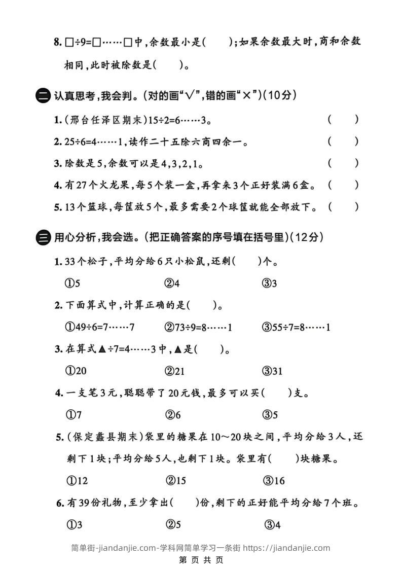 二年级下数学第一单元拔尖测试卷《冀教版》 简单街 4天前发布 关注 私信 010 二年级下数学第一单元拔尖测试卷《冀教版》此内容为付费资源,请付费后查看¥2.7黄金会员免费钻石会员免费立即购买您当前未登录!建议登陆后购买,可保存购买订单格式pdf页数5 页大小2.14 MB付费资源 ——预览已结束,还剩3页未读——开通会员后可免费下载高清完整文档 © 版权声明文章版权归作者所有,未经允许请勿转载。THE END小学数学喜欢就支持一下吧点赞0 分享收藏0