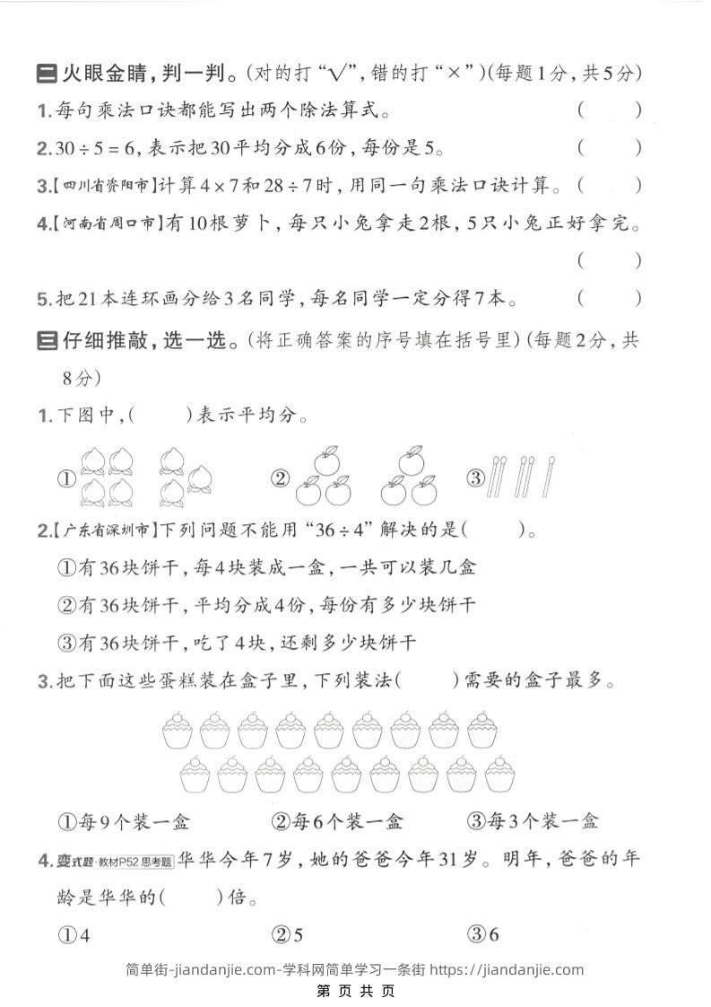 二年级下数学第二单元质量检测卷《西师版》 简单街 前天发布 关注 私信 010 二年级下数学第二单元质量检测卷《西师版》此内容为付费资源,请付费后查看¥2.7黄金会员免费钻石会员免费立即购买您当前未登录!建议登陆后购买,可保存购买订单格式pdf页数5 页大小3.17 MB付费资源 ——预览已结束,还剩3页未读——开通会员后可免费下载高清完整文档 © 版权声明文章版权归作者所有,未经允许请勿转载。THE END小学数学喜欢就支持一下吧点赞0 分享收藏0