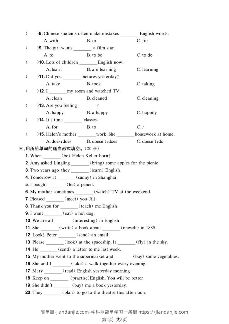 六年级下英语易错易混专项测试卷《外研版》 简单街 2小时前发布 关注 私信 000 六年级下英语易错易混专项测试卷《外研版》此内容为付费资源,请付费后查看¥1.2黄金会员免费钻石会员免费立即购买您当前未登录!建议登陆后购买,可保存购买订单格式pdf页数5 页大小3.34 MB付费资源 ——预览已结束,还剩3页未读——开通会员后可免费下载高清完整文档 © 版权声明文章版权归作者所有,未经允许请勿转载。THE END小学英语喜欢就支持一下吧点赞0 分享收藏0
