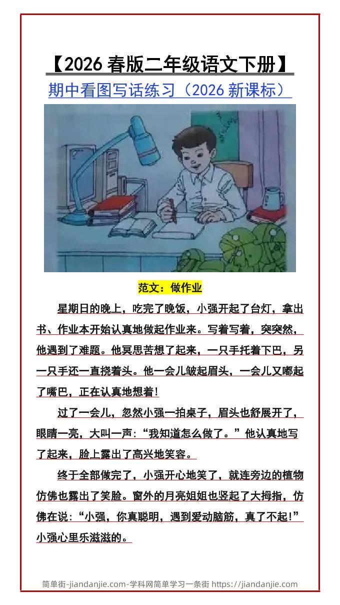 二年级下语文期中看图写话练习 简单街 2小时前发布 关注 私信 000 二年级下语文期中看图写话练习此内容为付费资源,请付费后查看¥1.5黄金会员免费钻石会员免费立即购买您当前未登录!建议登陆后购买,可保存购买订单格式pdf页数5 页大小392.64 KB付费资源 ——预览已结束,还剩3页未读——开通会员后可免费下载高清完整文档 © 版权声明文章版权归作者所有,未经允许请勿转载。THE END小学语文喜欢就支持一下吧点赞0 分享收藏0