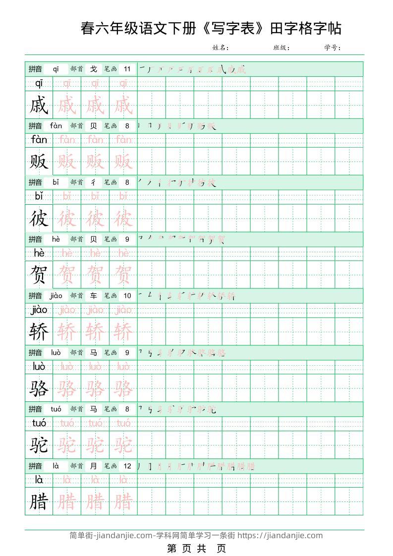 六年级下语文《写字表田字格字帖》拼音+部首+笔画+笔顺 简单街 2小时前发布 关注 私信 000 六年级下语文《写字表田字格字帖》拼音+部首+笔画+笔顺此内容为付费资源,请付费后查看¥0.9黄金会员免费钻石会员免费立即购买您当前未登录!建议登陆后购买,可保存购买订单格式pdf页数15 页大小4.64 MB付费资源 ——预览已结束,还剩13页未读——开通会员后可免费下载高清完整文档 © 版权声明文章版权归作者所有,未经允许请勿转载。THE END小学语文喜欢就支持一下吧点赞0 分享收藏0