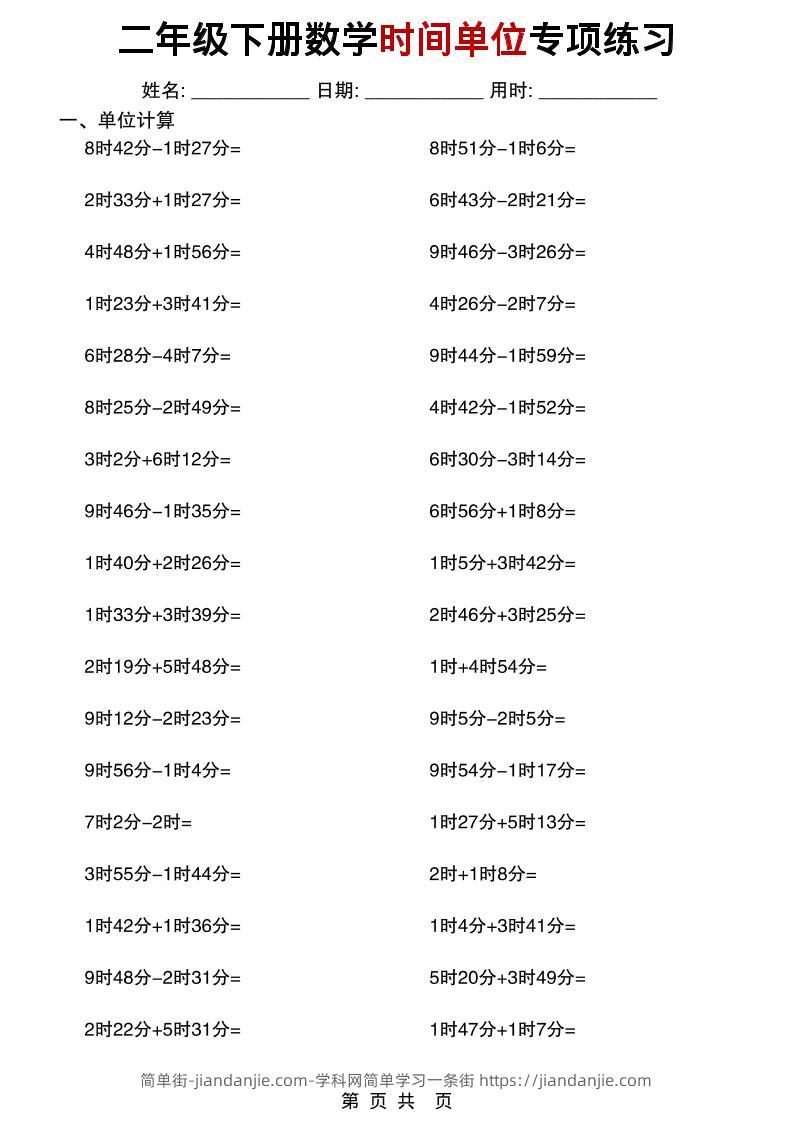 二年级下数学时间单位专项练习 简单街 5小时前发布 关注 私信 000 二年级下数学时间单位专项练习此内容为付费资源,请付费后查看¥1.5黄金会员免费钻石会员免费立即购买您当前未登录!建议登陆后购买,可保存购买订单格式pdf页数20 页大小83.54 KB付费资源 ——预览已结束,还剩18页未读——开通会员后可免费下载高清完整文档 © 版权声明文章版权归作者所有,未经允许请勿转载。THE END小学数学喜欢就支持一下吧点赞0 分享收藏0