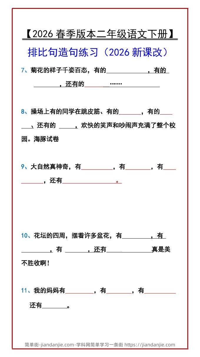 二年级下语文排比句造句练习 简单街 2小时前发布 关注 私信 000 二年级下语文排比句造句练习此内容为付费资源,请付费后查看¥1.5黄金会员免费钻石会员免费立即购买您当前未登录!建议登陆后购买,可保存购买订单格式pdf页数4 页大小135.32 KB付费资源 ——预览已结束,还剩2页未读——开通会员后可免费下载高清完整文档 © 版权声明文章版权归作者所有,未经允许请勿转载。THE END小学语文喜欢就支持一下吧点赞0 分享收藏0