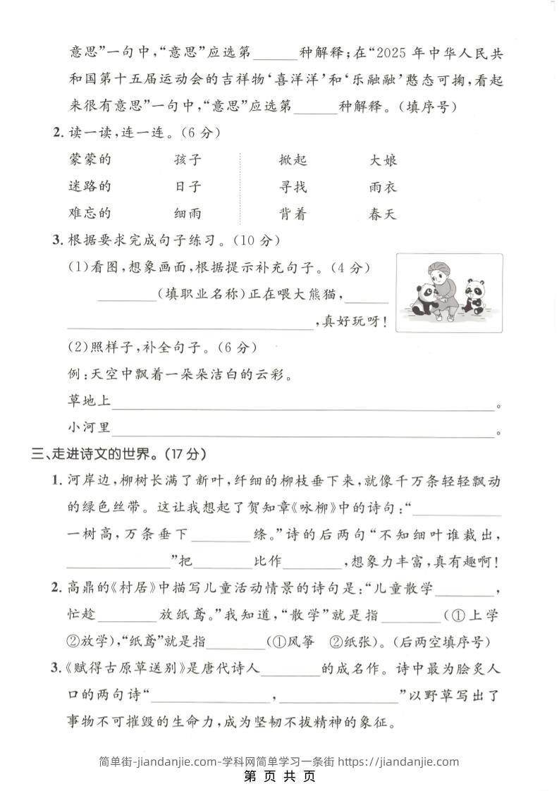 二年级下语文第一次月考拔尖测试卷 简单街 2小时前发布 关注 私信 000 二年级下语文第一次月考拔尖测试卷此内容为付费资源,请付费后查看¥2.7黄金会员免费钻石会员免费立即购买您当前未登录!建议登陆后购买,可保存购买订单格式pdf页数5 页大小5.62 MB付费资源 ——预览已结束,还剩3页未读——开通会员后可免费下载高清完整文档 © 版权声明文章版权归作者所有,未经允许请勿转载。THE END小学语文喜欢就支持一下吧点赞0 分享收藏0