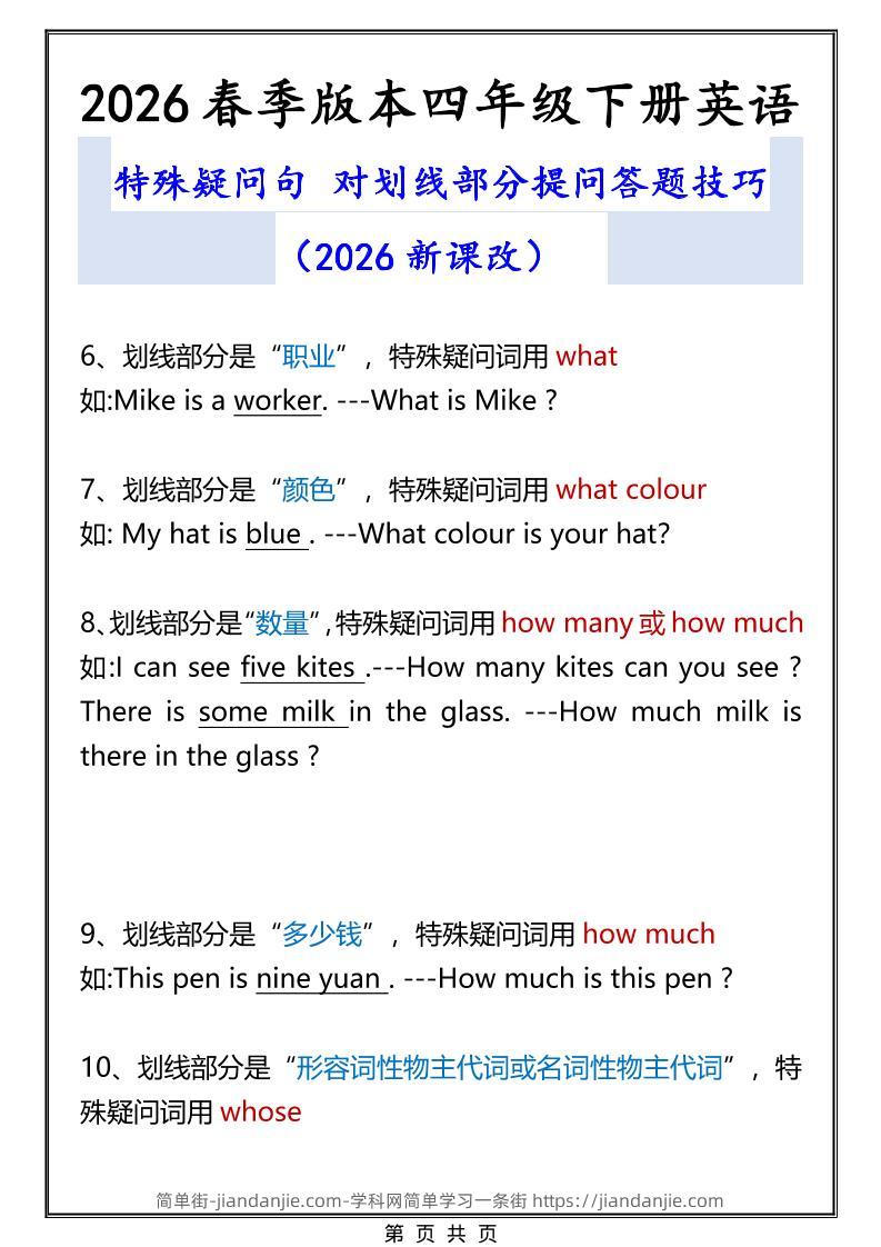 2026春新版四年级下英语特殊疑问句答题技巧 简单街 6小时前发布 关注 私信 000 2026春新版四年级下英语特殊疑问句答题技巧此内容为付费资源,请付费后查看¥0.9黄金会员免费钻石会员免费立即购买您当前未登录!建议登陆后购买,可保存购买订单格式pdf页数3 页大小68.52 KB付费资源 ——预览已结束,还剩1页未读——开通会员后可免费下载高清完整文档 © 版权声明文章版权归作者所有,未经允许请勿转载。THE END小学英语喜欢就支持一下吧点赞0 分享收藏0