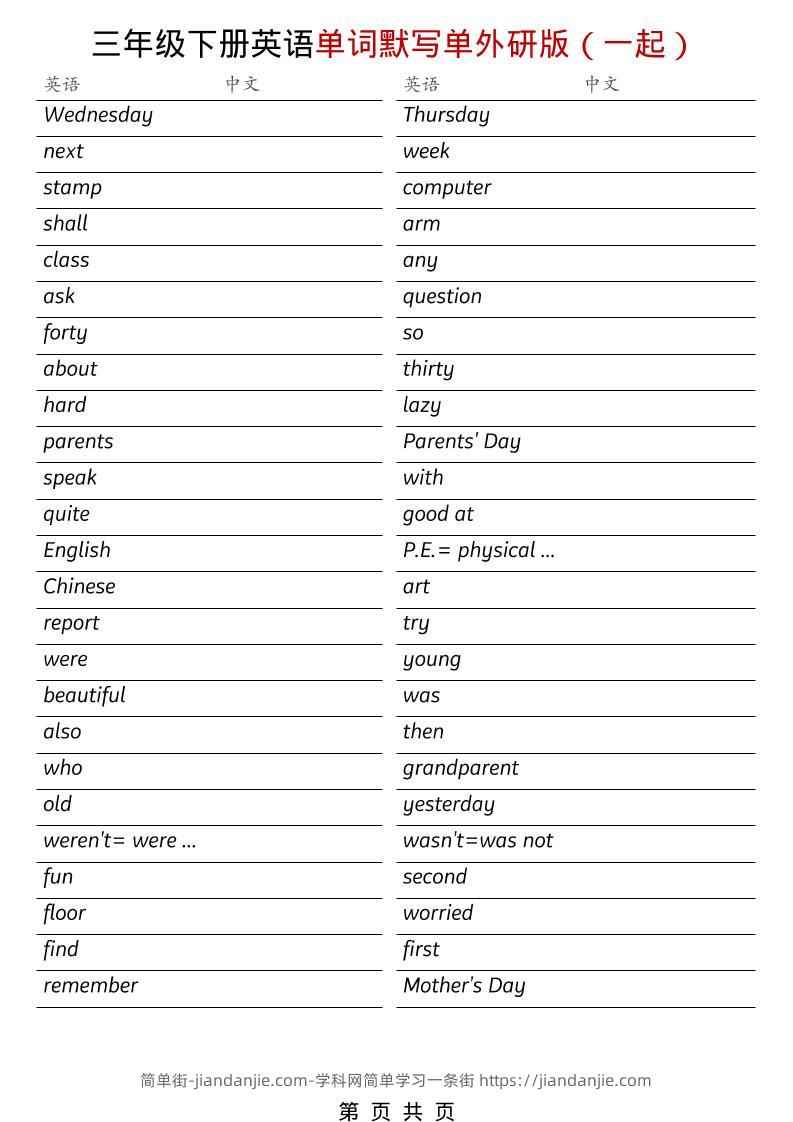 三年级下英语全册单词默写单《外研版(一起)》 简单街 4小时前发布 关注 私信 000 三年级下英语全册单词默写单《外研版(一起)》此内容为付费资源,请付费后查看¥0.9黄金会员免费钻石会员免费立即购买您当前未登录!建议登陆后购买,可保存购买订单格式pdf页数6 页大小1.17 MB付费资源 ——预览已结束,还剩4页未读——开通会员后可免费下载高清完整文档 © 版权声明文章版权归作者所有,未经允许请勿转载。THE END小学英语喜欢就支持一下吧点赞0 分享收藏0