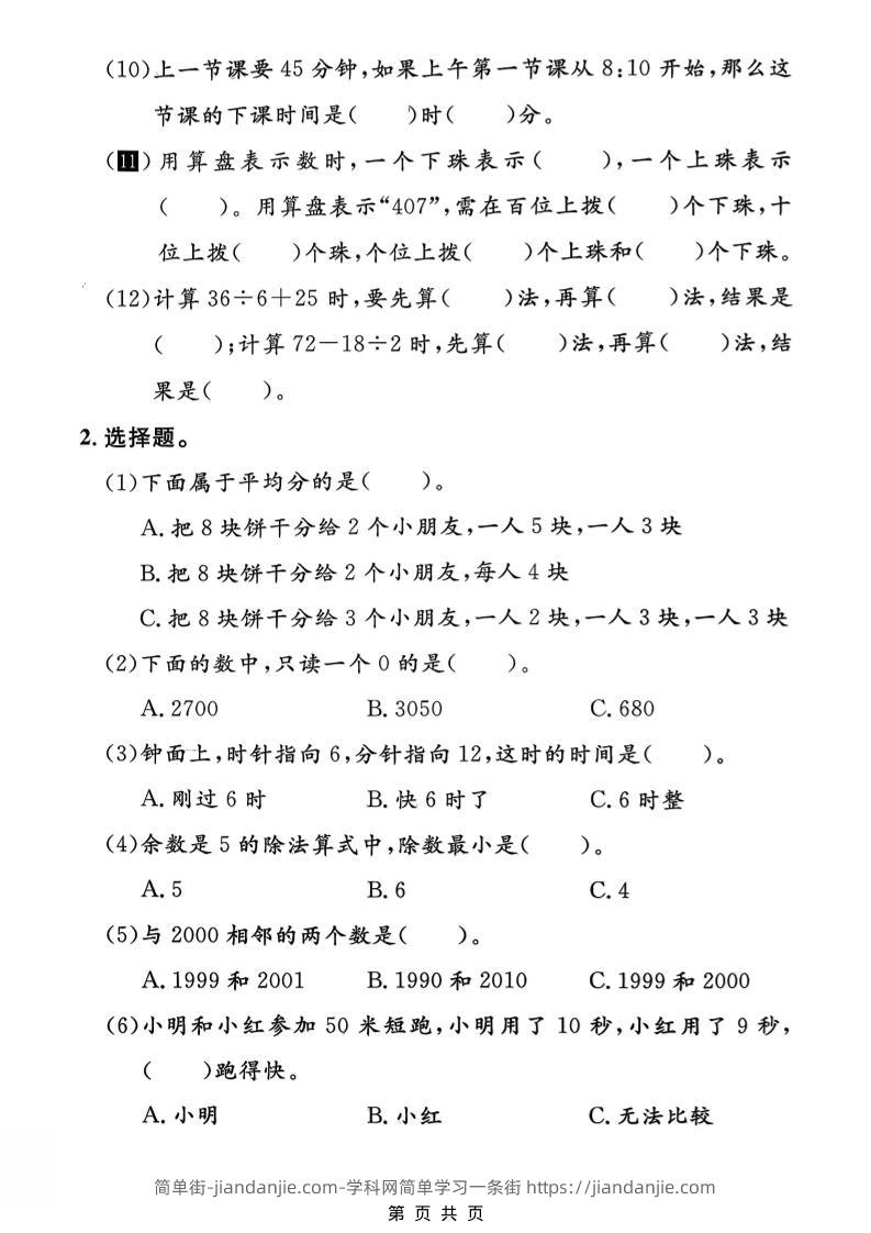 二年级下数学基础知识专项检测卷1《沪教版》 简单街 17小时前发布 关注 私信 010 二年级下数学基础知识专项检测卷1《沪教版》此内容为付费资源,请付费后查看¥1.2黄金会员免费钻石会员免费立即购买您当前未登录!建议登陆后购买,可保存购买订单格式pdf页数5 页大小2.44 MB付费资源 ——预览已结束,还剩3页未读——开通会员后可免费下载高清完整文档 © 版权声明文章版权归作者所有,未经允许请勿转载。THE END小学数学喜欢就支持一下吧点赞0 分享收藏0