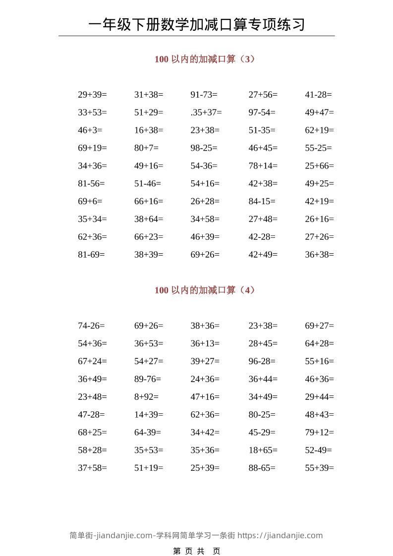 一年级下数学100以内加减口算专项练习 简单街 20小时前发布 关注 私信 000 一年级下数学100以内加减口算专项练习此内容为付费资源,请付费后查看¥0.9黄金会员免费钻石会员免费立即购买您当前未登录!建议登陆后购买,可保存购买订单格式pdf页数10 页大小749.86 KB付费资源 ——预览已结束,还剩8页未读——开通会员后可免费下载高清完整文档 © 版权声明文章版权归作者所有,未经允许请勿转载。THE END小学数学喜欢就支持一下吧点赞0 分享收藏0