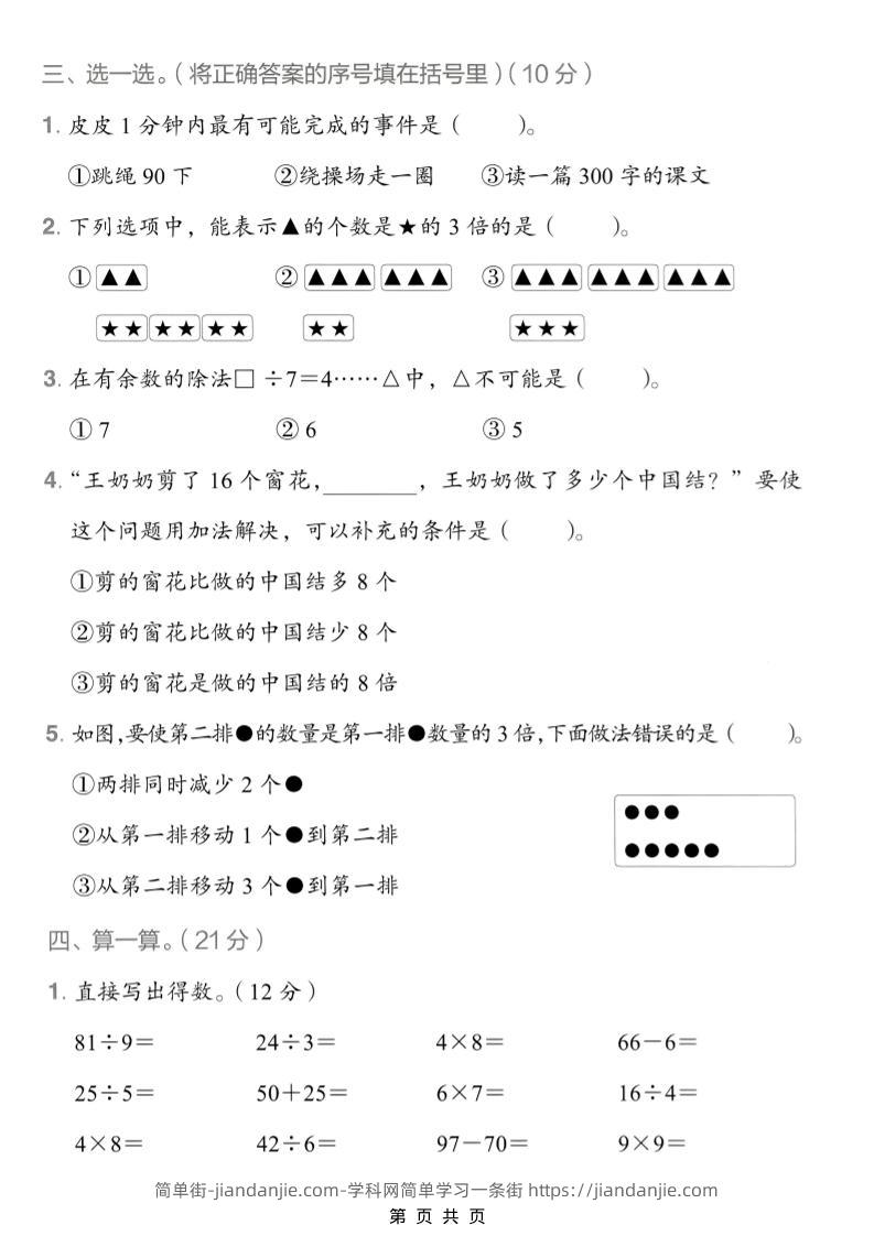 二年级下数学期中质量检测卷《人教版》 简单街 18小时前发布 关注 私信 000 二年级下数学期中质量检测卷《人教版》此内容为付费资源,请付费后查看¥2.7黄金会员免费钻石会员免费立即购买您当前未登录!建议登陆后购买,可保存购买订单格式pdf页数5 页大小3.01 MB付费资源 ——预览已结束,还剩3页未读——开通会员后可免费下载高清完整文档 © 版权声明文章版权归作者所有,未经允许请勿转载。THE END小学数学喜欢就支持一下吧点赞0 分享收藏0