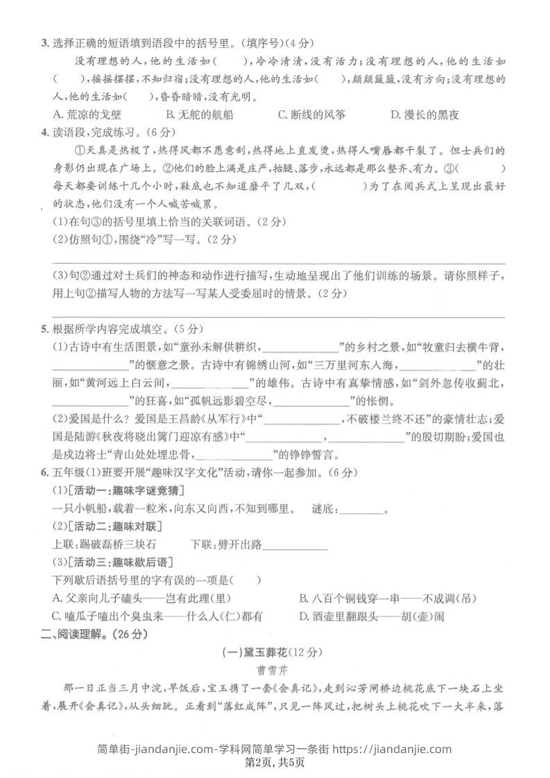 五年级下语文期中拔尖测试卷(1) 简单街 18小时前发布 关注 私信 000 五年级下语文期中拔尖测试卷(1)此内容为付费资源,请付费后查看¥1.5黄金会员免费钻石会员免费立即购买您当前未登录!建议登陆后购买,可保存购买订单格式pdf页数5 页大小5.36 MB付费资源 ——预览已结束,还剩3页未读——开通会员后可免费下载高清完整文档 © 版权声明文章版权归作者所有,未经允许请勿转载。THE END小学语文喜欢就支持一下吧点赞0 分享收藏0